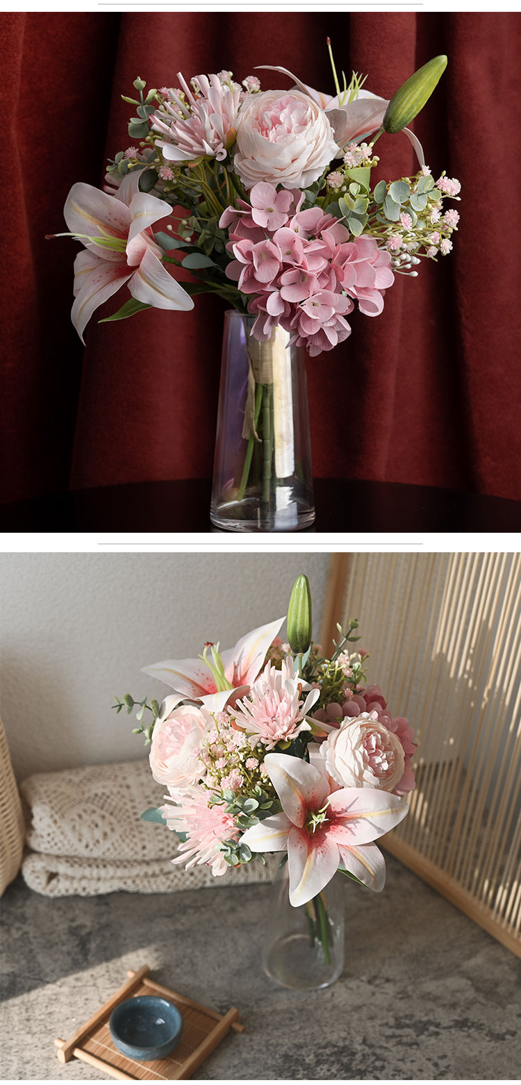 CF01088 Artificial Lily Lotus Hydrangea Chrysanthemum Bouquet New Design Bridal Bouquet