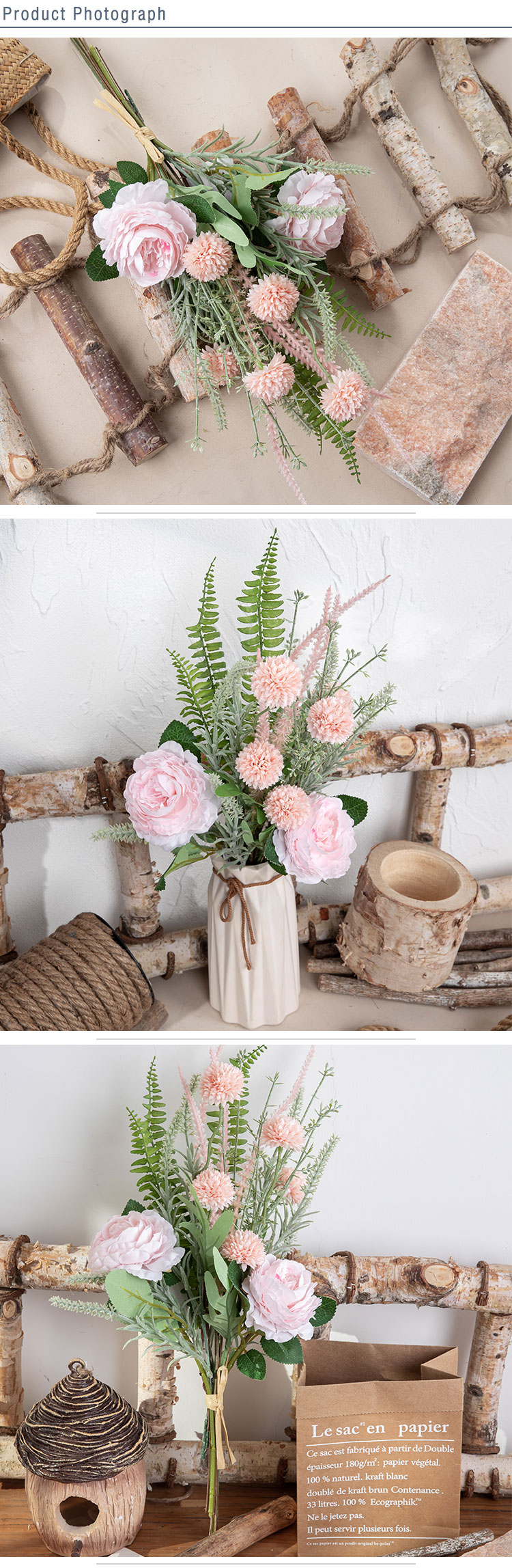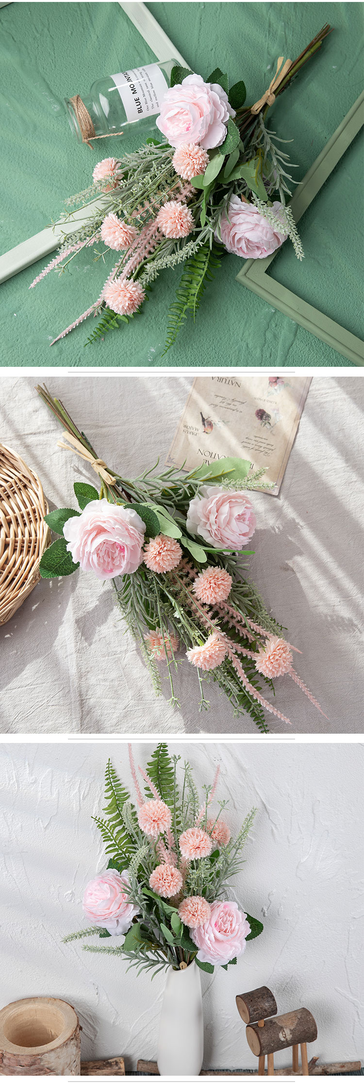 CF01245 Artificial Pink Rose Dandelion Persian Chestnut Rice Grass Sage Bouquet Decorative Wedding Home Flowers
