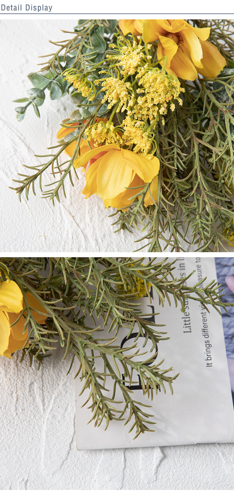 CF01253 Artificial Flower Dark Yellow Cosmos Chrysanthemum Eucalyptus Bouquet for Wedding Party Event Decoration