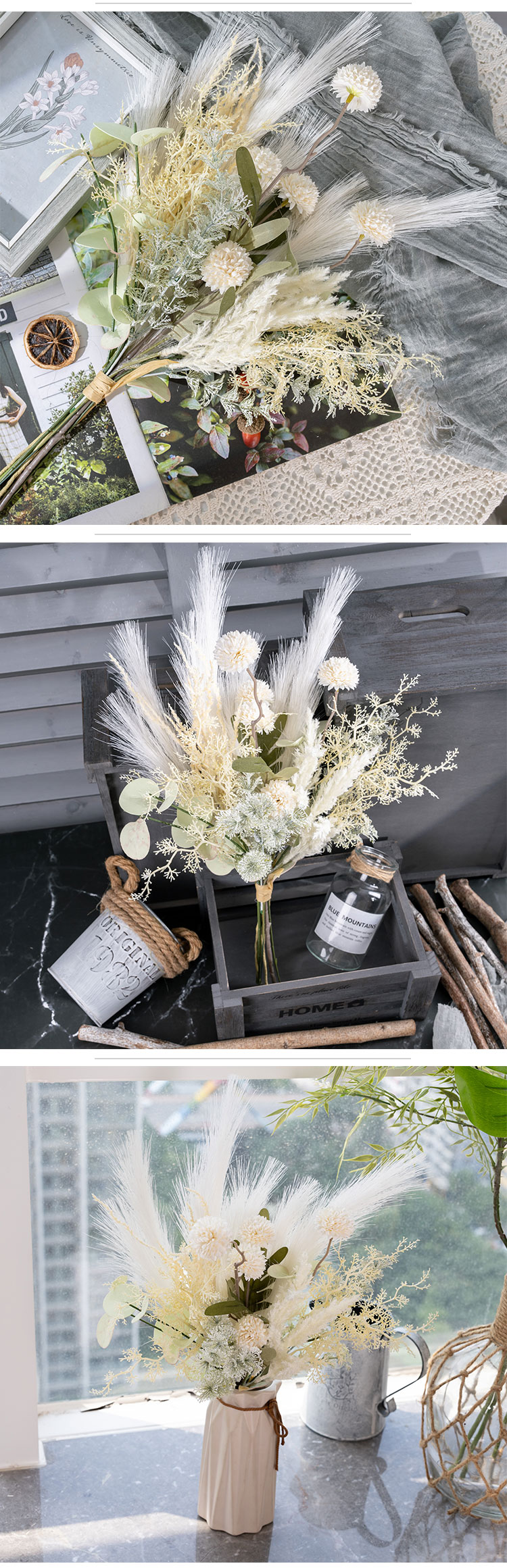 This incredible item is priced at 1 bundle, which includes a combination of 5 dandelion flower heads, 2 white wormwood pieces, 2 herbs, 1 hairy clover, 1 willow bride, 3 PE eucalyptus, and 3 hairy grasses. Each element beautifully complements one another, creating a harmonious and visually striking arrangement.Rest assured, this package is carefully designed for ultimate convenience. The inner box measures 58*58*15cm, while the carton size is 60*60*47cm, ensuring the utmost protection during transportation.