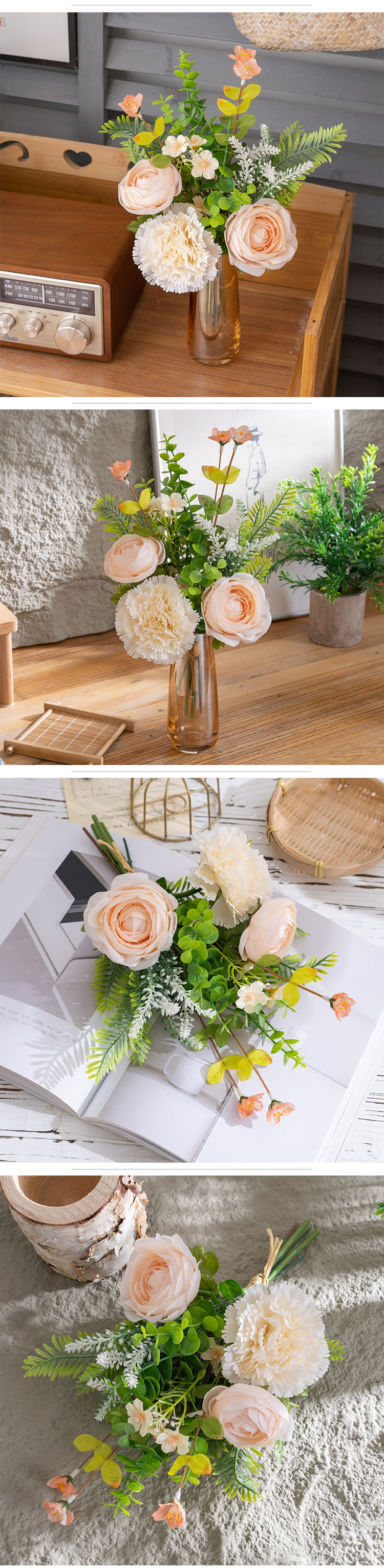 CF01344 Hot Sale Artificial Fabric Silk Ranunculus Carnation Plastic Eucalyptus Mini Spring Flower Bouquet With PP Accessories