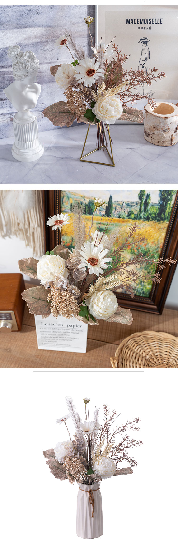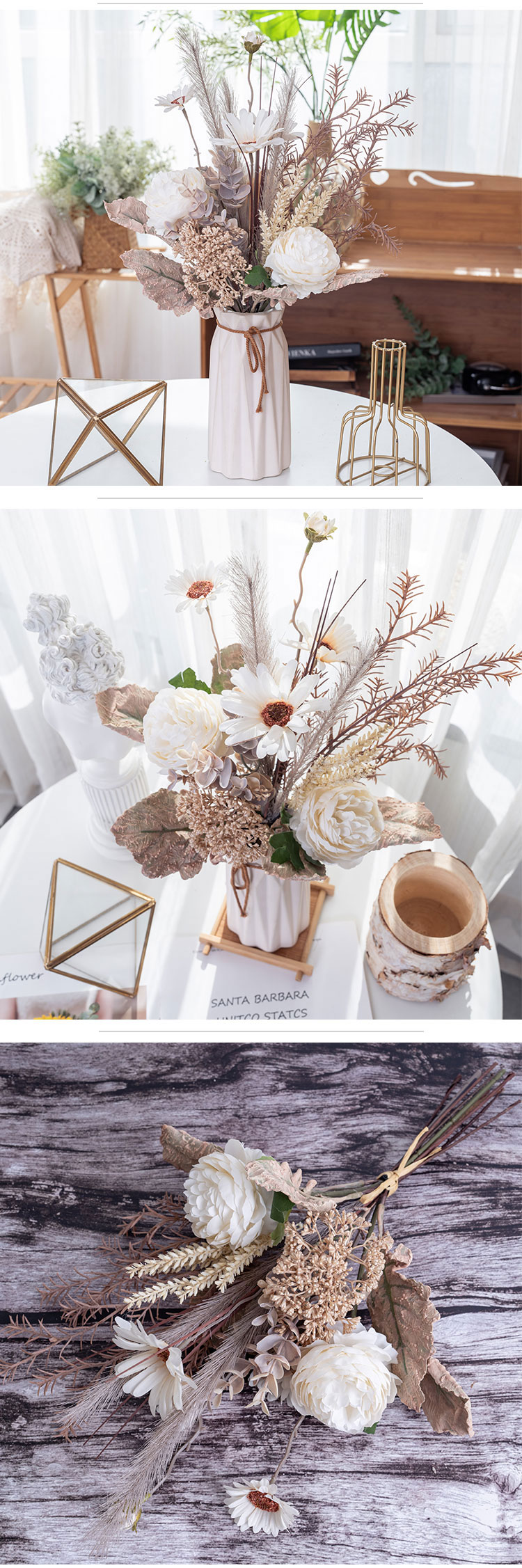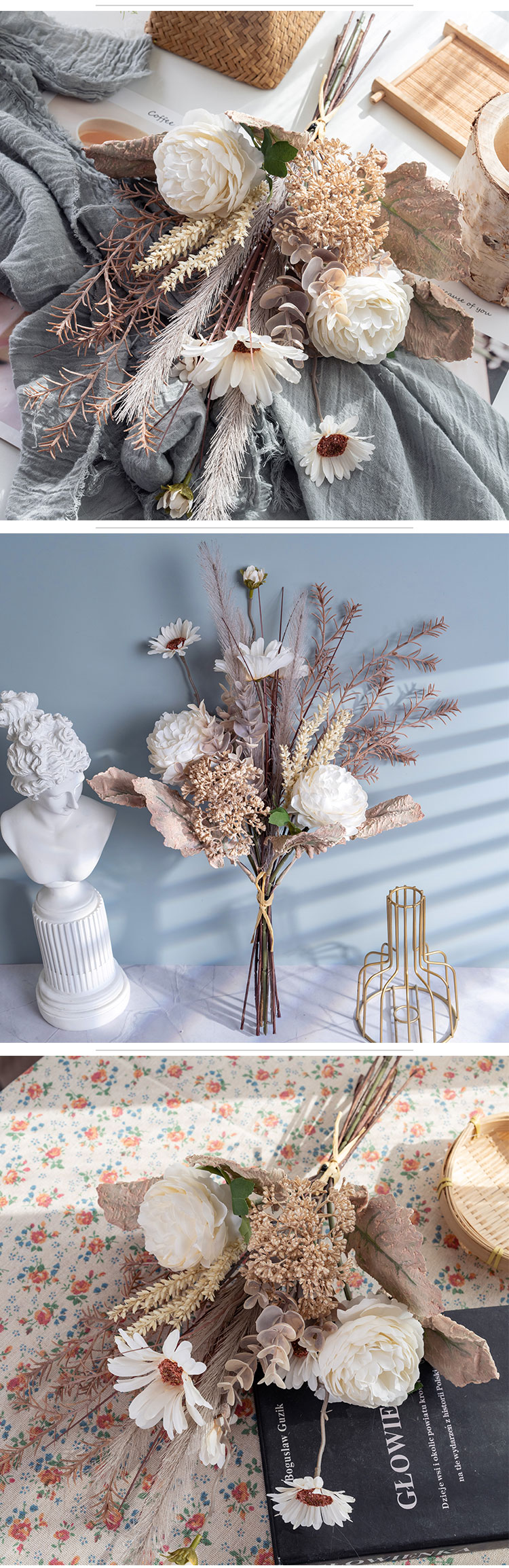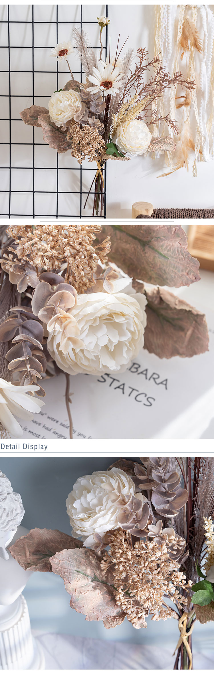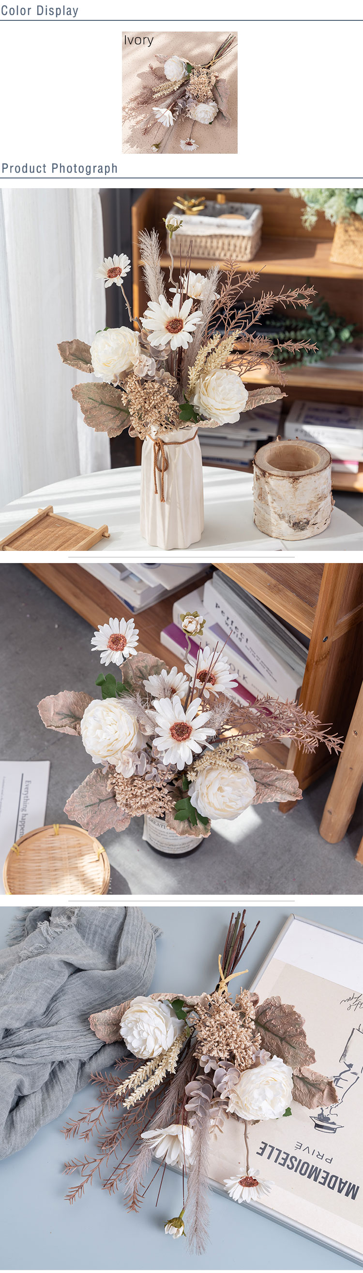 In a soft and elegant Ivory color, it has a timeless appeal that fits seamlessly with various styles. Made with a blend of handmade care and machine precision, this bouquet meets excellent standards, holding ISO9001 and BSCI certifications, so you can choose it with confidence.It’s incredibly versatile, ideal for sprucing up your home, bedroom, hotel room, or even a hospital to create a more pleasant atmosphere. It’s wonderful for weddings, outdoor gatherings, as a photographic prop, at exhibitions, in supermarkets, and for all kinds of special occasions like Valentine's Day, Christmas, and Mother's Day.