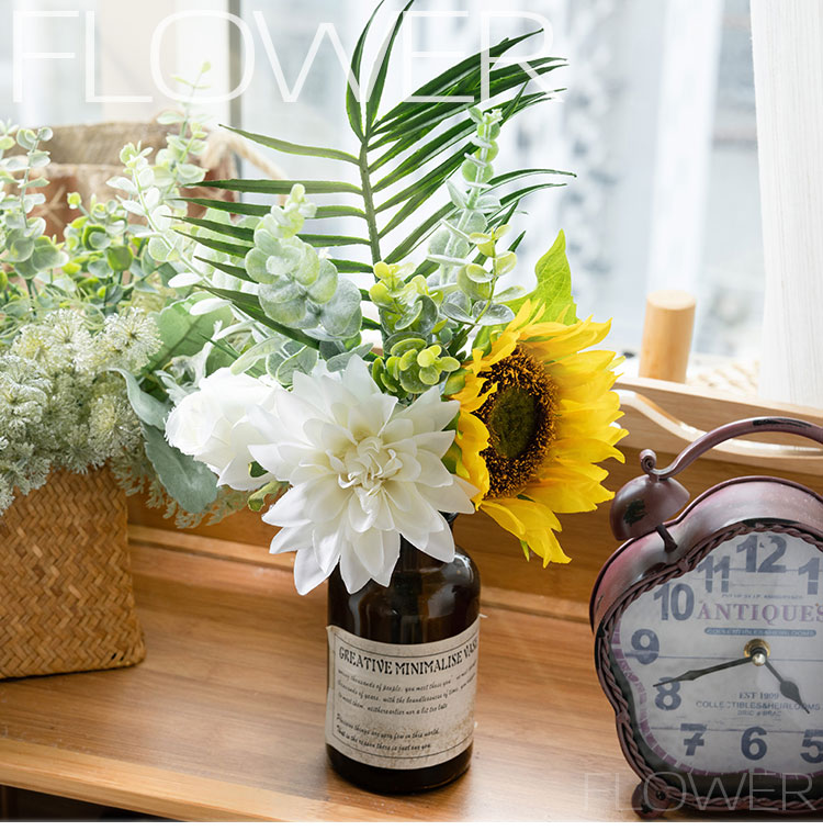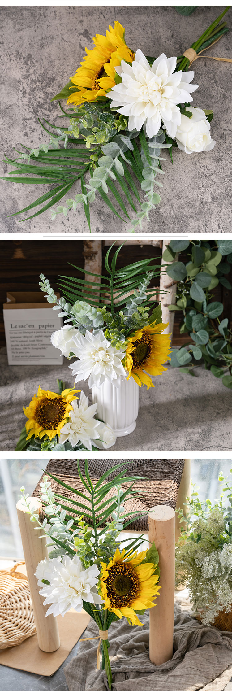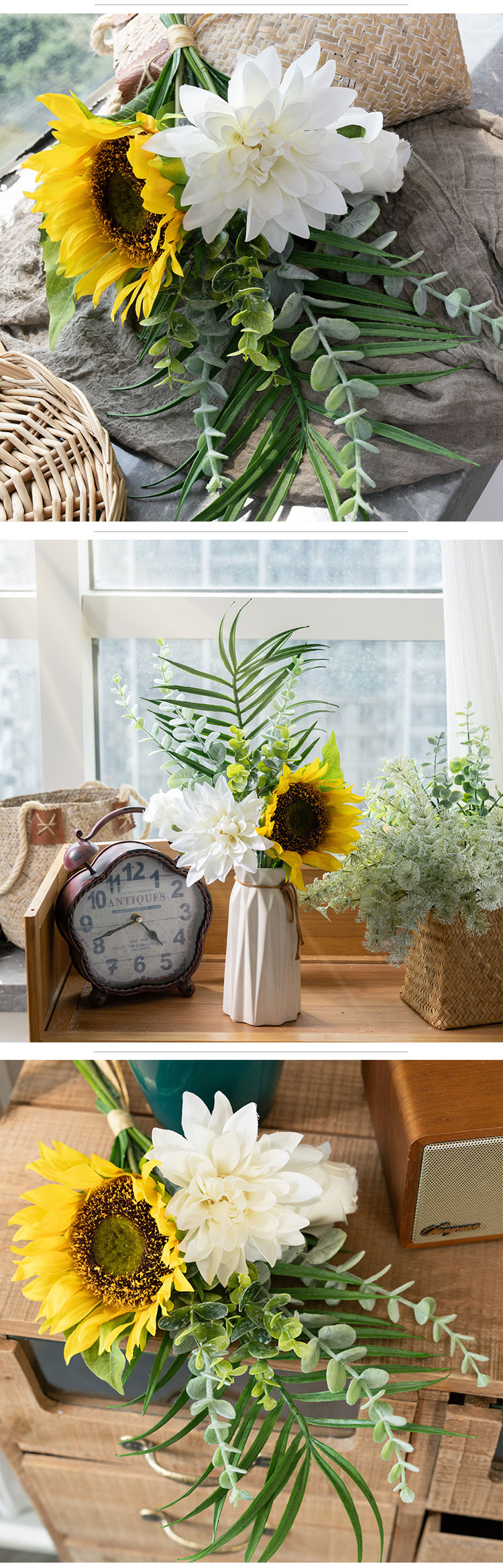 CF8001-1Wholesale Competitive Price Artificial Silk Sunflower Fabric Dahlia Plastic Eucalyptus Greenery Fern Bundle For Deco