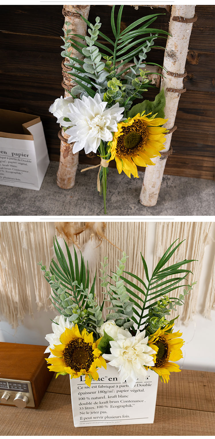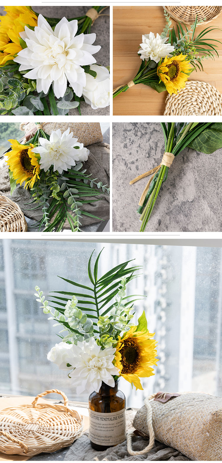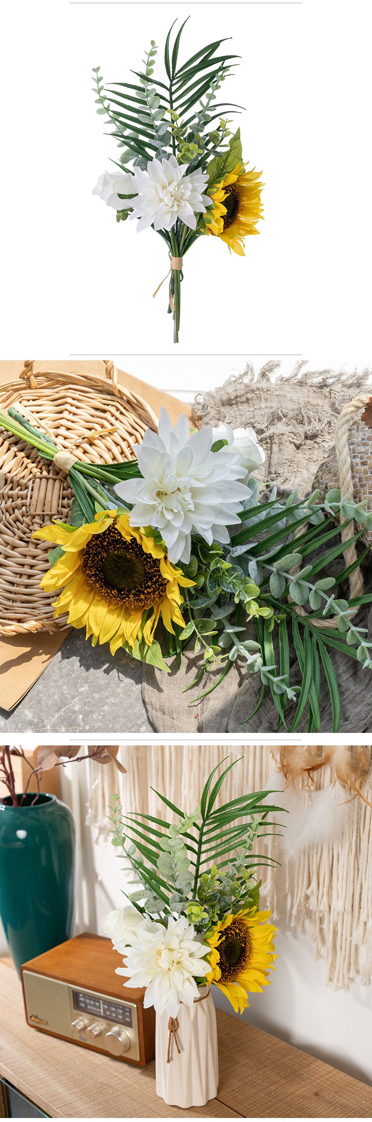 CF8001-1Wholesale Competitive Price Artificial Silk Sunflower Fabric Dahlia Plastic Eucalyptus Greenery Fern Bundle For Deco