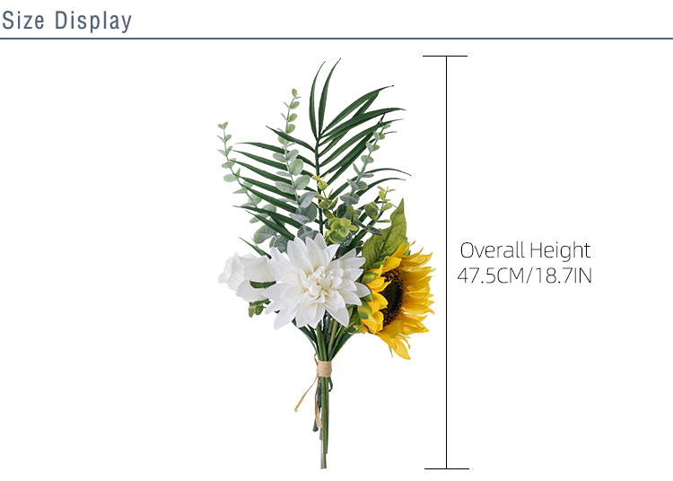 Welcome to a world of freshness and beauty! We are thrilled to present the exquisite Ersari Flower Sunflower Letter. Prepare to be enchanted by its delicate charm and natural allure.CF800-1 crafted from a combination of 80% fabric, 10% plastic, and 10% iron, this lovely creation boasts both quality and durability. It's the perfect blend of materials that ensures longevity while capturing the essence of nature.Let's dive into the dimensions, shall we? Standing at an overall height of 47.5 cm, this sunflower letter is perfectly sized to catch anyone's attention.