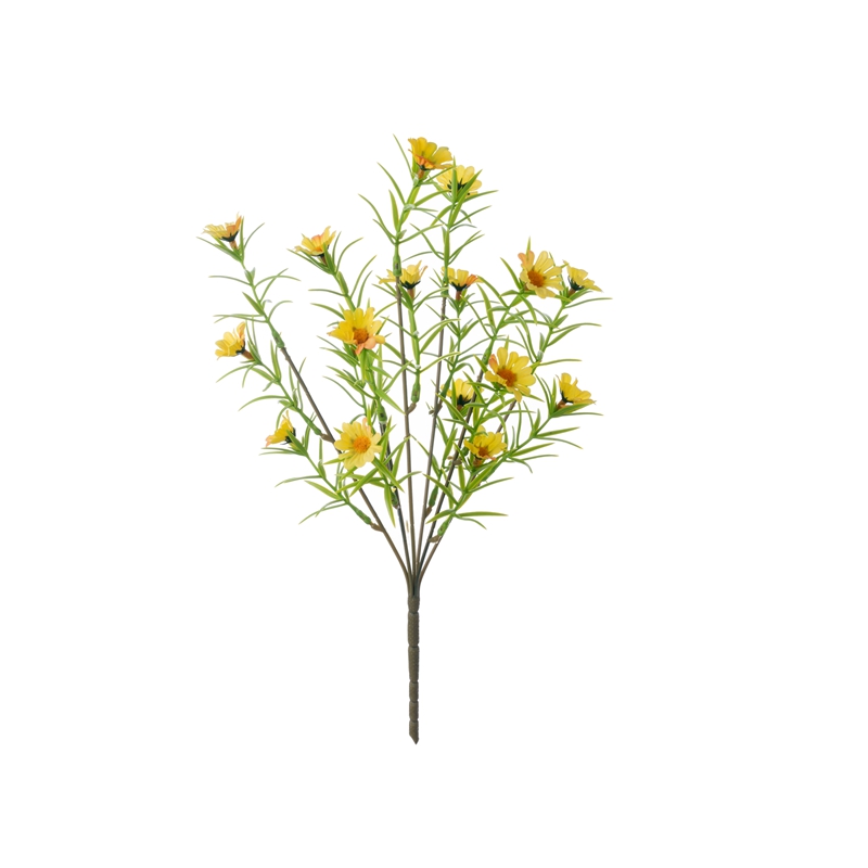 The Seven-Headed Sword Orchid Chrysanthemum Collection captivates with its vibrant hues, available in White, Yellow, and Dark Pink. Each delicate flower, with a diameter of 3cm, is a harmonious fusion of plastic and fabric, exuding a lifelike charm that is nothing short of mesmerizing. Handmade with precision and enhanced with machine techniques, these flowers stand as a testament to the craftsmanship that defines Callafloral.