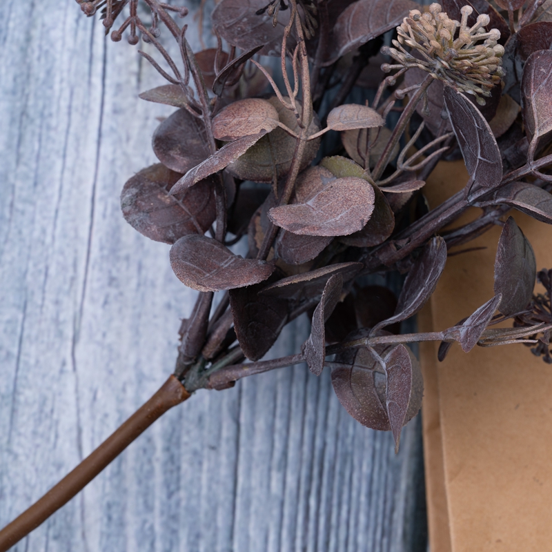 Our Eucalyptus Mini Umbrella Bean Single Branch comes in a range of colours including ivory, beige, light brown, and dark brown. This variety allows for easy customization and matching with different decor styles and preferences.
