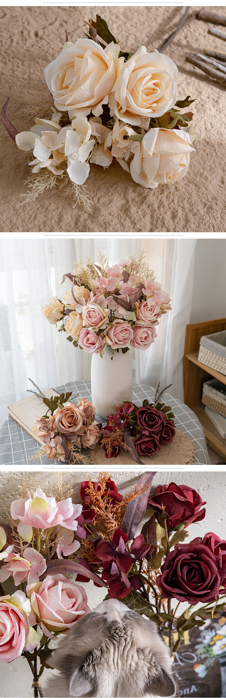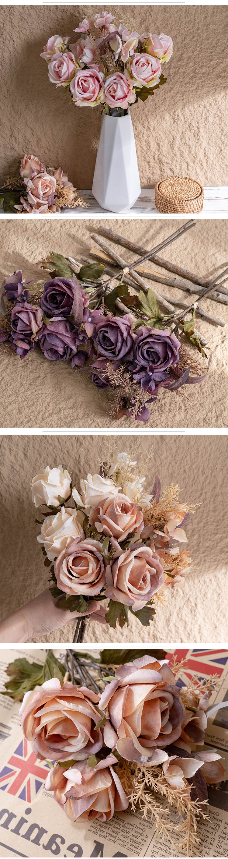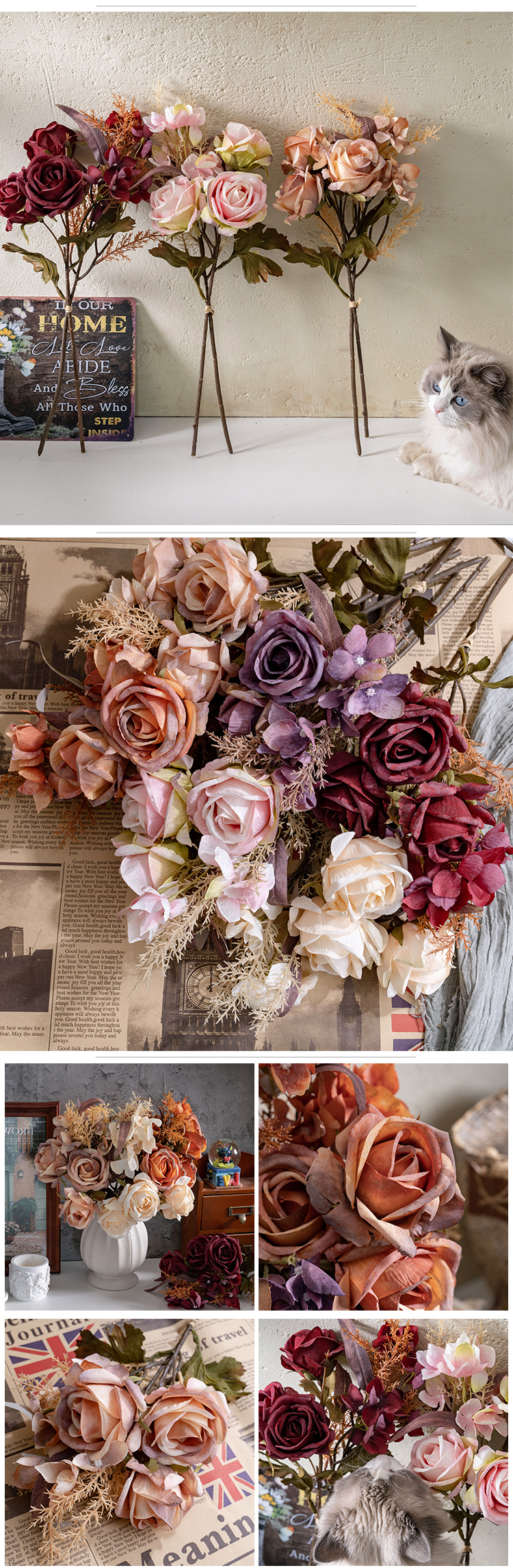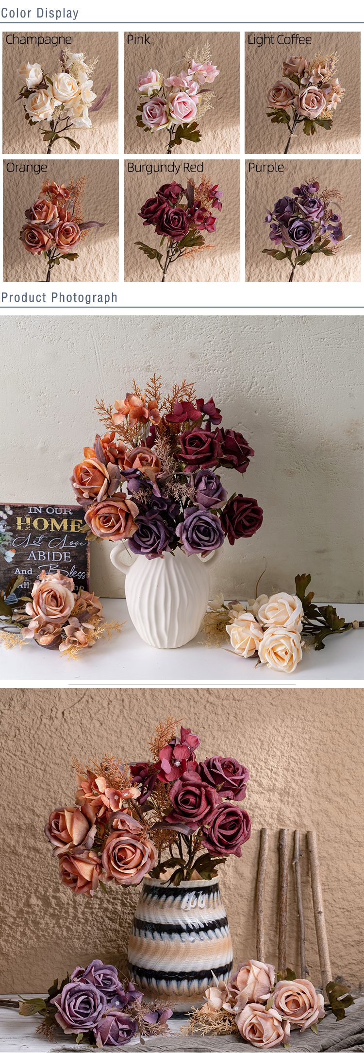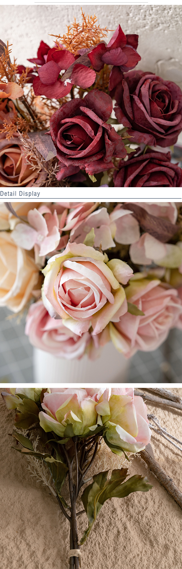CL22003 Artificial Vintage Rose Bouquets Flower Arrangement Silk Flower Wedding Party Faux Floral Branch Decoration