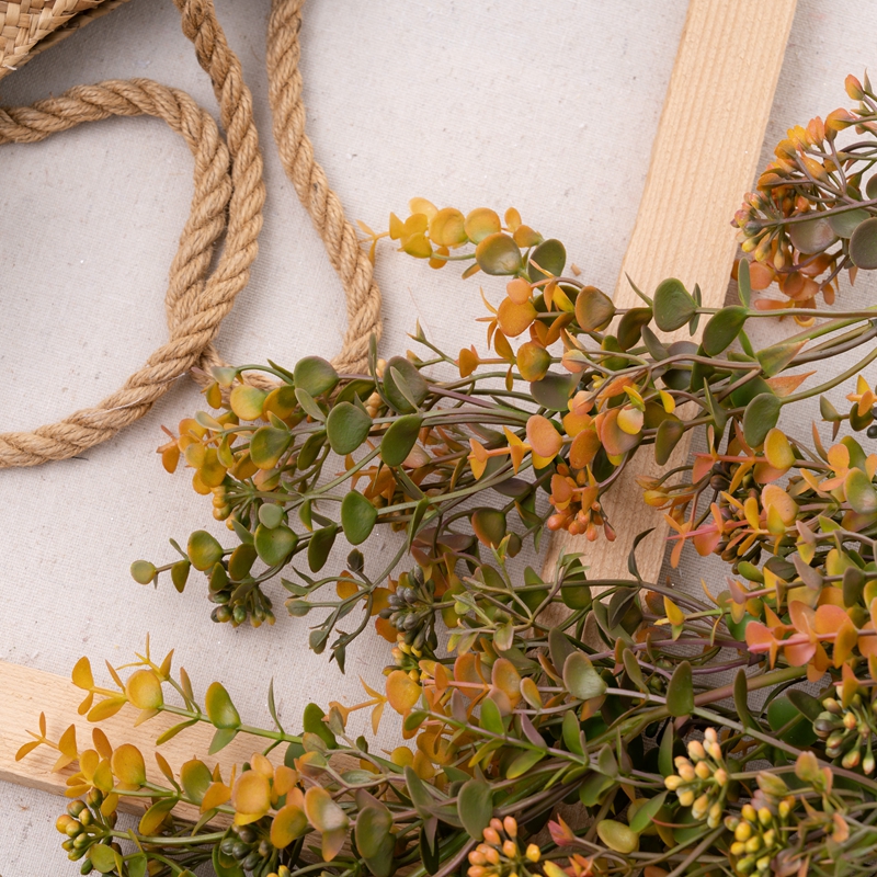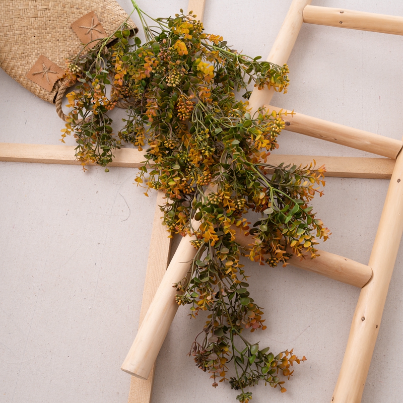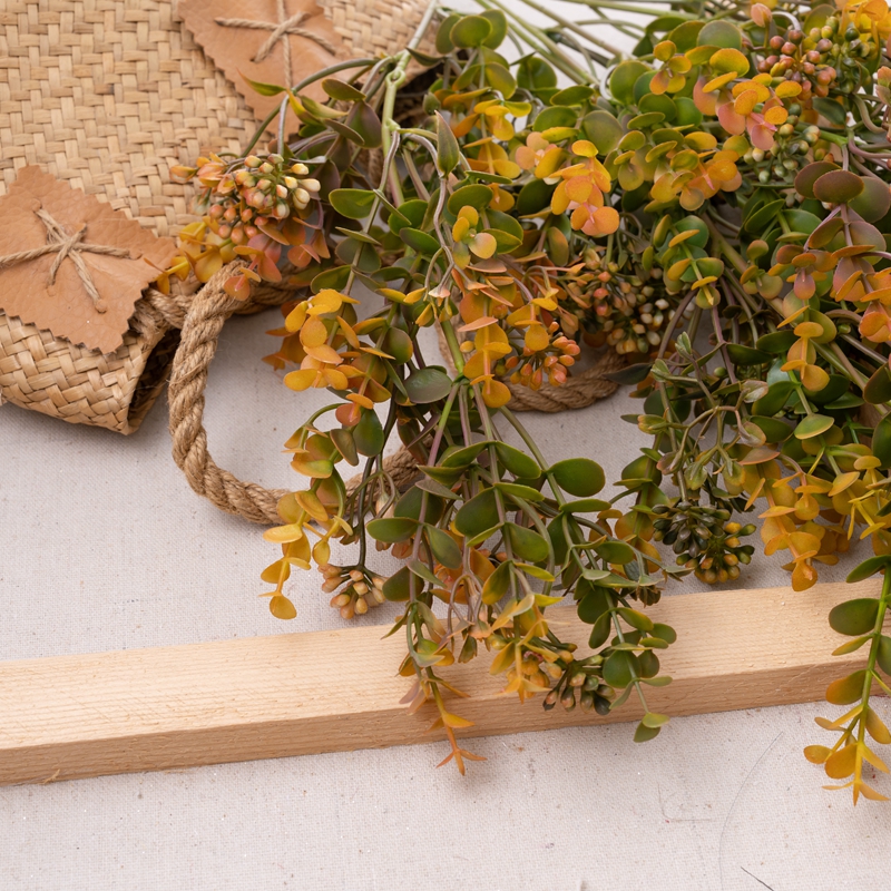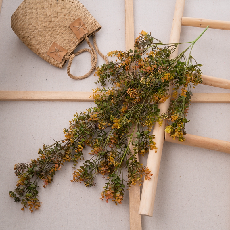 The Mini Plastic Eucalyptus Berry Drop is a combination of handcrafted and machine-made techniques, ensuring precision and intricate details in every piece. The result is a unique and exquisite decoration perfect for home, room, bedroom, hotel, hospital, shopping mall, wedding, company, outdoors, photographic, prop, exhibition, hall, supermarket, and many other occasions.