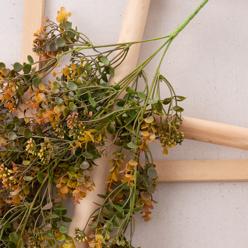 The Mini Plastic Eucalyptus Berry Drop decorations from CALLAFLORAL are the perfect addition to any indoor or outdoor space. With its vibrant yellow-green colour and miniature appearance, it will enhance the ambiance of any occasion while maintaining its durability and lightweight design.