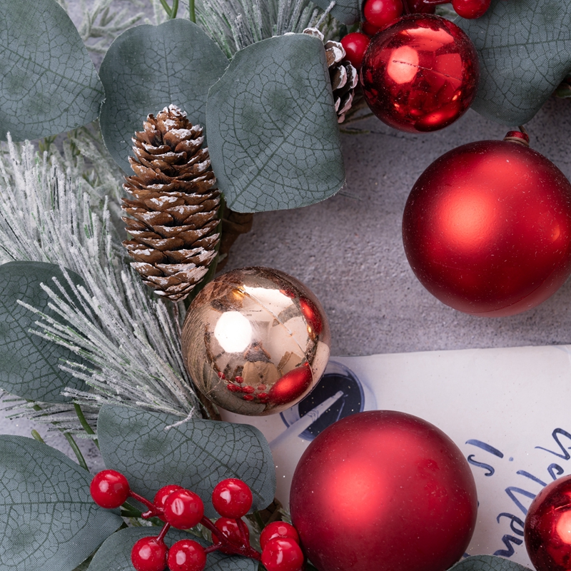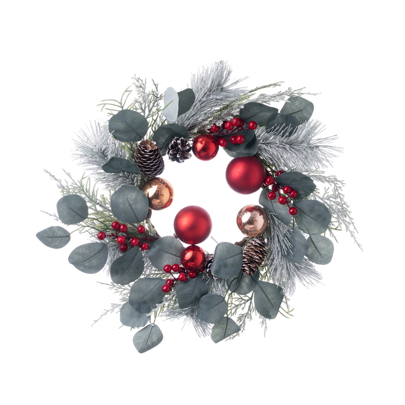 The CL54580 16-inch Eucalyptus Electroplated Ball Wreath is proudly produced in Shandong, China. It has been certified with ISO9001 and BSCI, ensuring that it meets the highest quality standards.