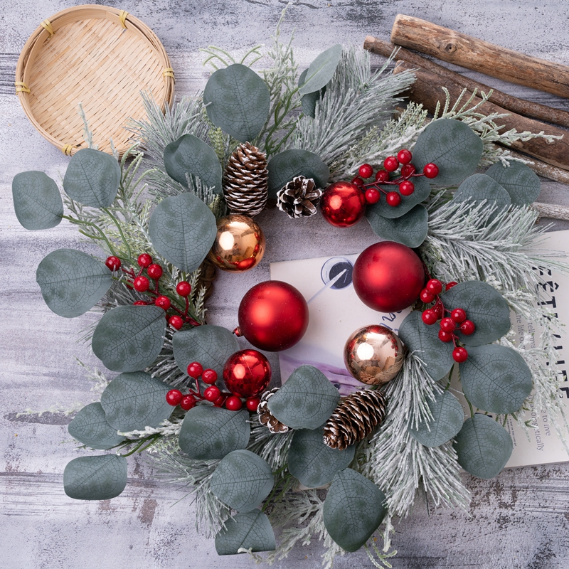 The CL54580 16-inch Eucalyptus Electroplated Ball Wreath is perfect for various occasions. Whether you want to enhance your home, room, bedroom, hotel, hospital, shopping mall, wedding, company, or even outdoors, this wreath is a versatile choice. It can also be used as a photographic prop, exhibition hall decoration, or supermarket display.