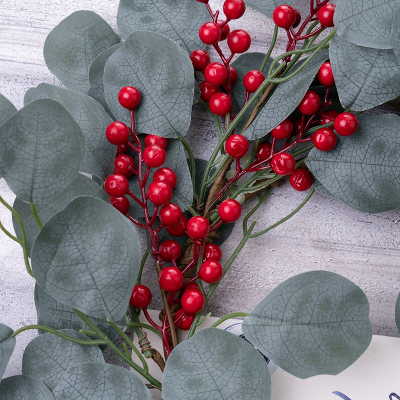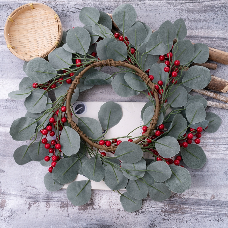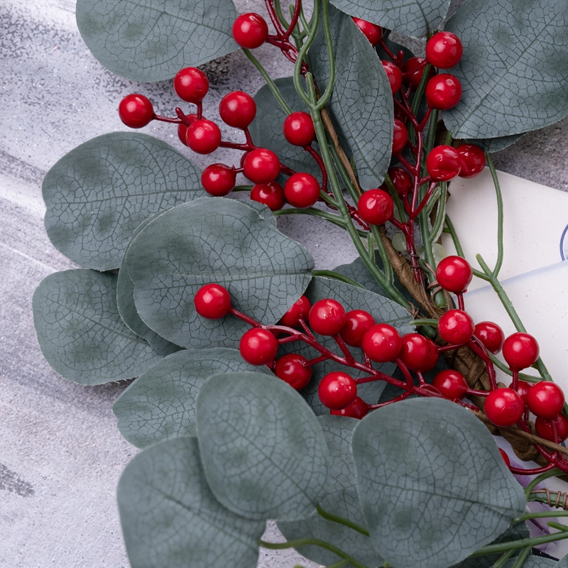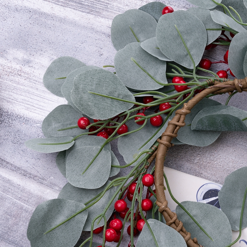 The CL54583 16-inch Eucalyptus Red Berry Wreath is perfect for various occasions. Whether you want to enhance your home, room, bedroom, hotel, hospital, shopping mall, wedding, company, or even outdoors, this wreath is a versatile choice. It can also be used as a photographic prop, exhibition hall decoration, or supermarket display.