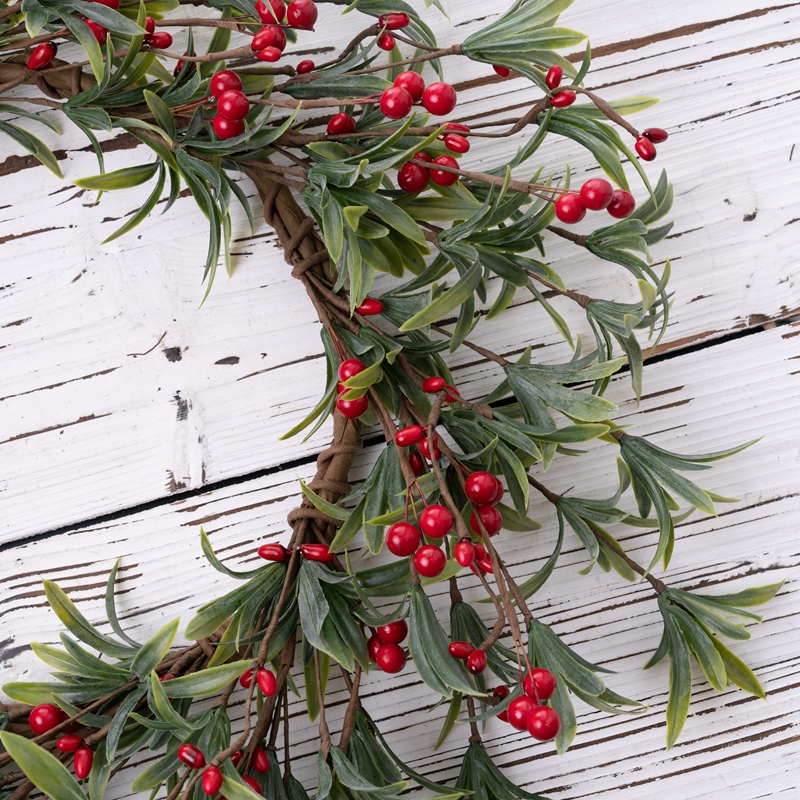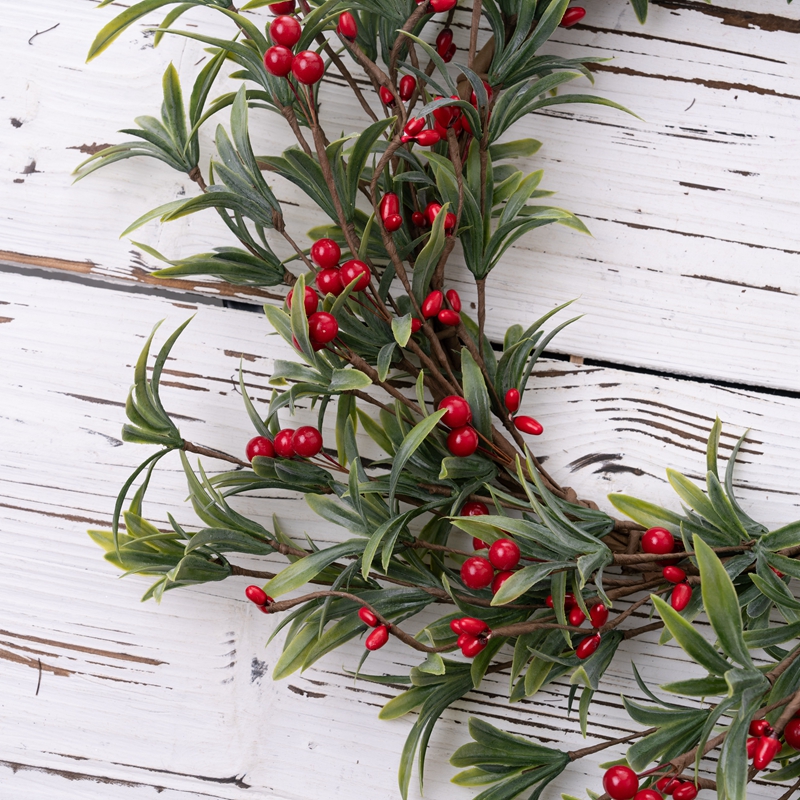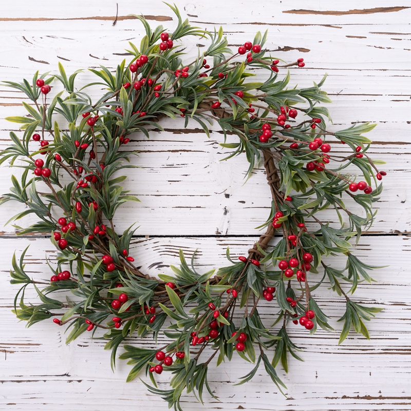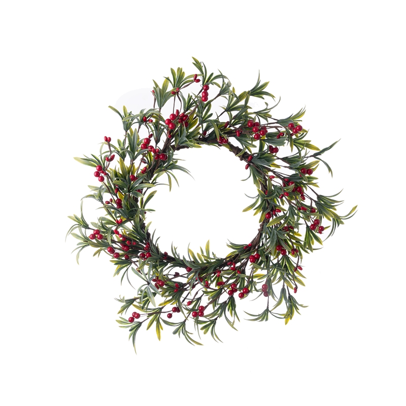 Introducing our latest product, the Big Ring of Pointy Christmas Fruit. Item No: CL54609. This exquisite piece is crafted with precision using high-quality plastic, foam, and wire materials. Its overall diameter of 48cm and inner ring diameter of 24cm ensure a statement-making presence in any space.