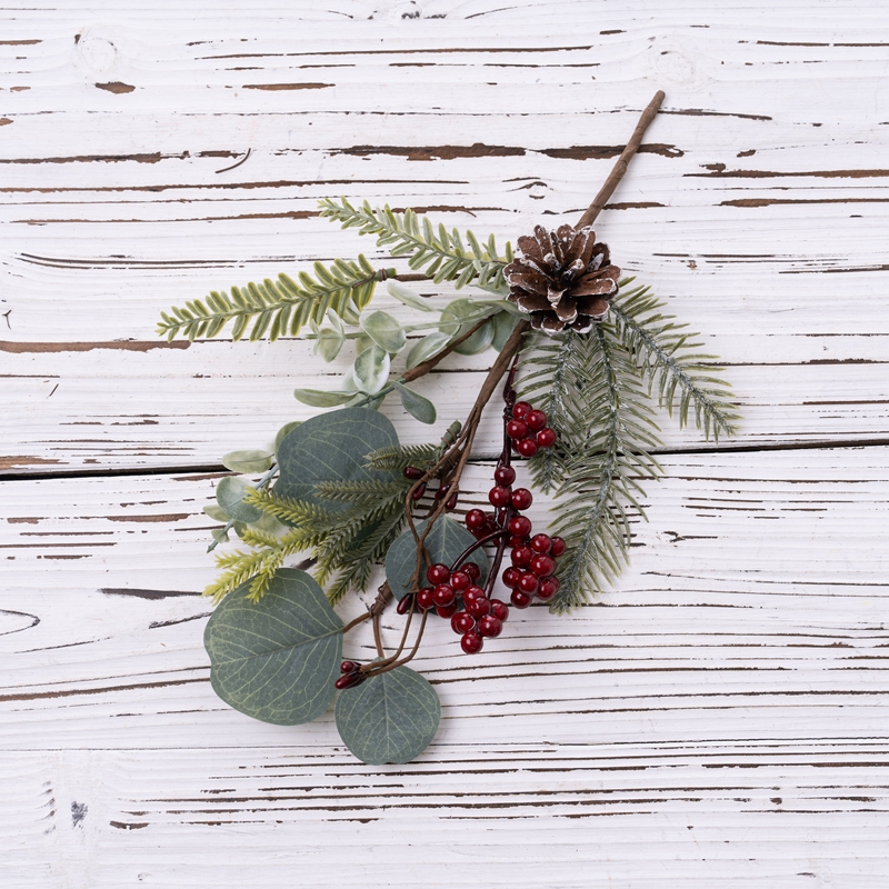 The overall height of the sprig is 31cm, with a diameter of 15cm, making it the perfect size to add a touch of natural beauty to any space. Made with high-quality plastic, fabric, natural pine cones, and foam, this sprig is not only visually appealing but also durable and long-lasting.