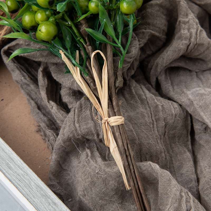 The CALLAFLORAL fruit bundle consists of five long fruit bundles, each with an overall height of 34cm. The overall diameter measures 15cm, while the bean diameter is 0.9cm. The bundle weighs 42g, making it lightweight and easy to handle. The material used in the construction of this bundle is a combination of plastic, Polyron, and hand-wrapped paper, ensuring durability and longevity.