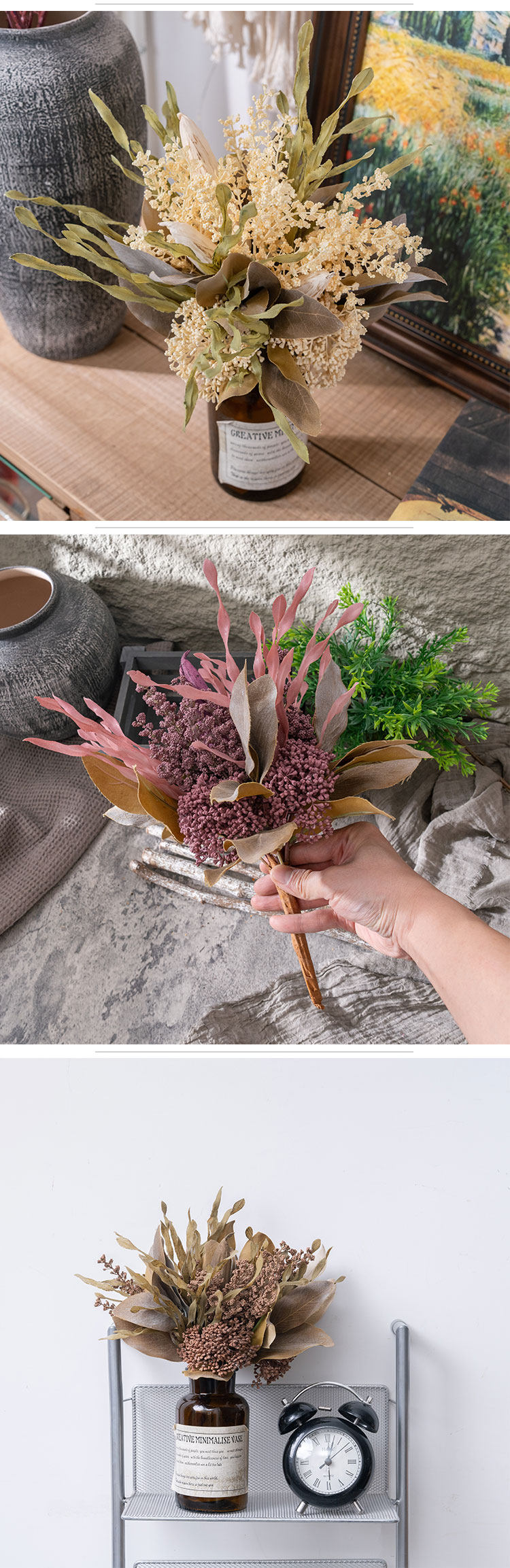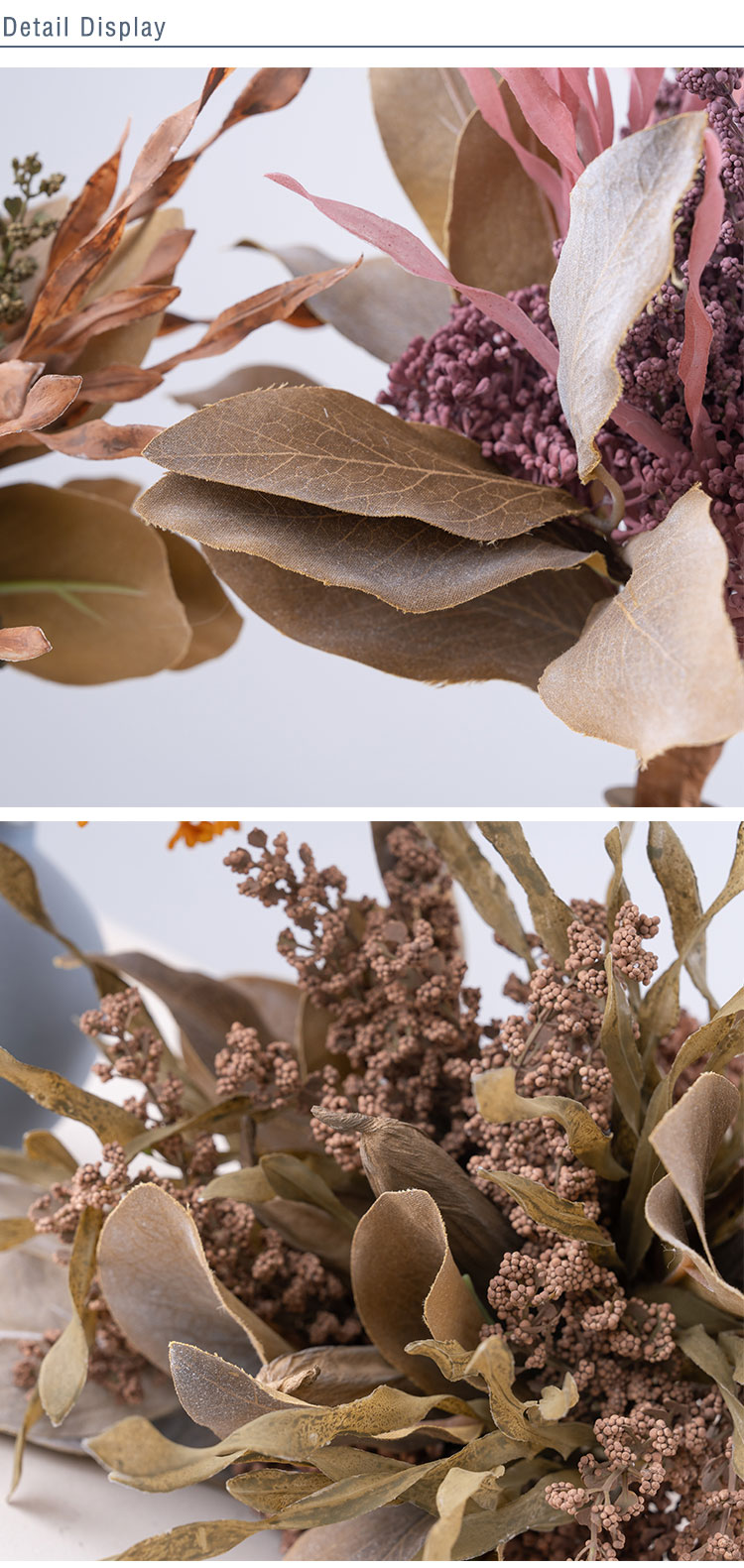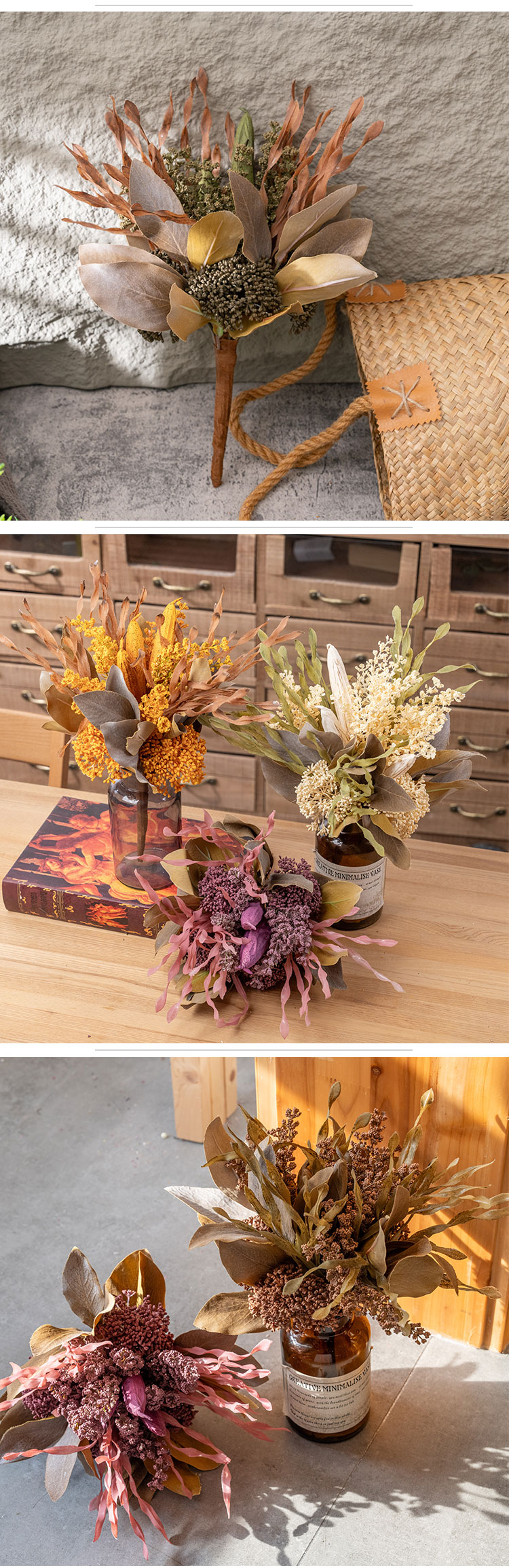 The Seaweed Leaf Bouquet, item number MW62003, is an exquisite combination of beauty and practicality, designed to enhance a variety of environments. Crafted from high-quality materials including fabric, foam, paper, and wire, this bouquet stands out for its elegant appearance and durability. With an overall height ranging from 33.5 cm to 36 cm and a diameter of 22 cm to 23 cm, it serves as an eye-catching centerpiece that can fit seamlessly into any décor scheme. Weighing between 134.1 g and 136.3 g, this bouquet is lightweight yet substantial enough to provide a sense of presence without overwhelming the space it occupies. The carefully arranged composition features three stunning okra pieces alongside a delightful assortment of flowers, grass, and leaves, creating a harmonious blend that captures the essence of nature.The bouquet is offered in a variety of colors including coffee, green, pink purple, white, and yellow, allowing customers to select the perfect hue to match their personal style or event theme. Each bouquet is a thoughtful creation, made using a combination of handmade and machine techniques, ensuring that every detail is meticulously crafted to perfection. Designed with versatility in mind, the Seaweed Leaf Bouquet is suitable for a wide range of occasions. Whether adorning a home, bedroom, or hotel lobby, or serving as a decorative element in hospitals, shopping malls, or exhibition halls, this bouquet fits effortlessly into both formal and casual settings. It also enhances special events such as weddings, Valentine’s Day, Mother’s Day, and Christmas, making it the ideal choice for those looking to celebrate life’s milestones with elegance. When purchasing the Seaweed Leaf Bouquet, customers can rest assured knowing they are investing in a product backed by quality certifications such as ISO9001 and BSCI. The bouquets are packaged securely in inner boxes measuring 80*30*15 cm, with each box containing ten pieces, making them convenient for bulk purchases and easy to transport.Payment options are flexible, accommodating various preferences including L/C, T/T, Western Union, Money Gram, and Paypal, ensuring a smooth transaction process for all buyers. In conclusion, the Seaweed Leaf Bouquet is more than just a decorative item; it is a versatile solution for enhancing the ambiance of any space while celebrating all of life's special moments. With its thoughtful design, quality craftsmanship, and wide range of applications, it's an excellent addition to any collection or an ideal gift for loved ones. Choose the Okra Seaweed Leaf Bouquet to bring a touch of natural beauty into your life!