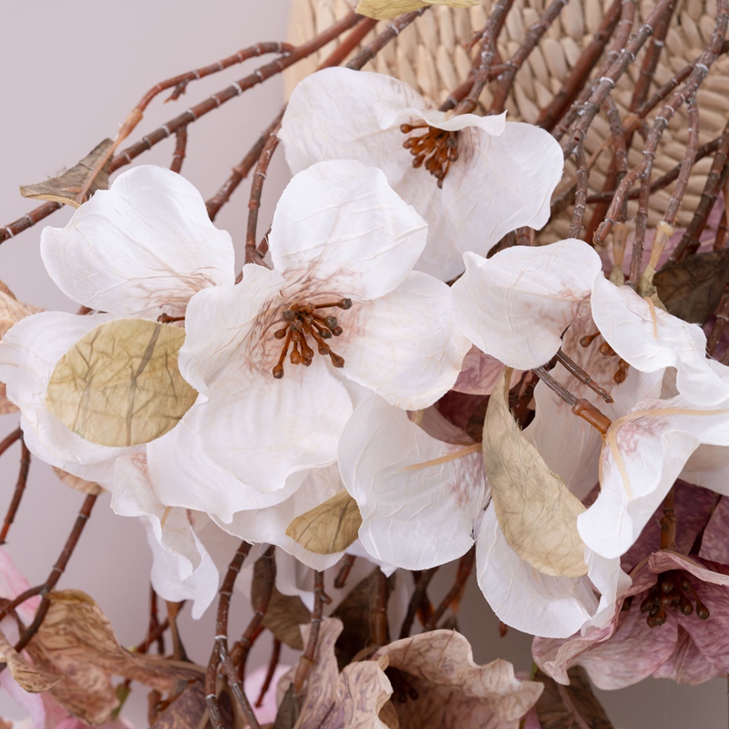 The Holly wood flower big branch is a masterpiece of craftsmanship, combining the finesse of handmade detailing with the precision of machine technology. Each branch is crafted from high-quality plastic and fabric, ensuring durability and longevity while maintaining a naturalistic aesthetic. The overall height of 74cm and diameter of 19cm give it a substantial presence, while the large flowers with a diameter of 11cm and smaller ones at 9cm create a charming visual hierarchy.