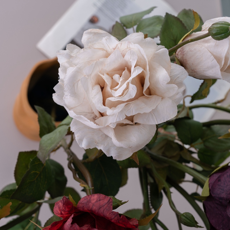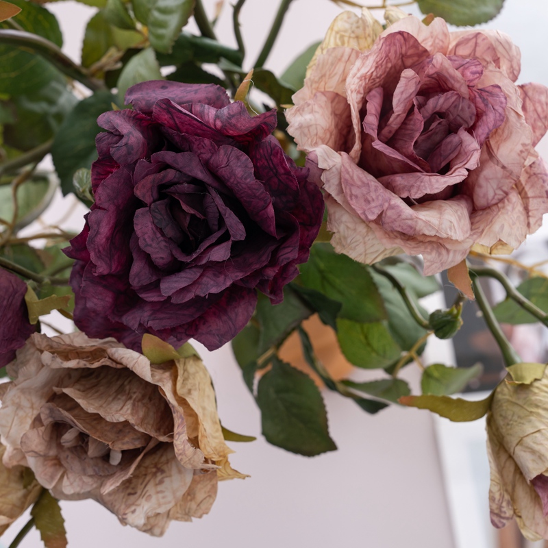The Two-headed Rose is available in a range of captivating colors, including ivory, pink, coffee, purple, red, and dark purple. These vibrant hues add a touch of color and vitality to any space, whether it's a cozy bedroom, a bustling shopping mall, or a serene hotel lobby. The handmade and machine-assisted techniques used in its creation ensure that each rose is a unique work of art, with intricate details and flawless finishes.