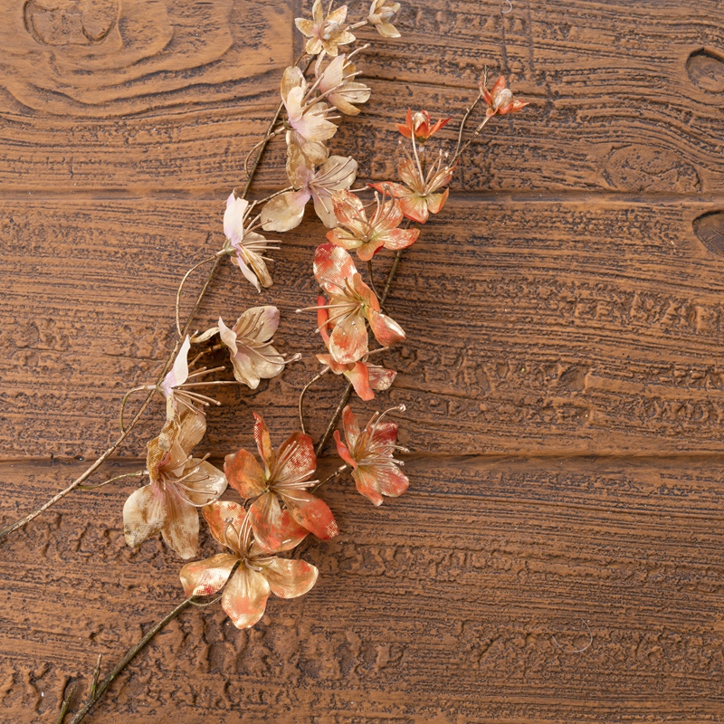 The CL77545 boasts an impressive overall height of 85 centimeters, making it a focal point in any setting. At its centerpiece, the large birchapple flower, with a diameter of 8.5 centimeters, shines brightly like a beacon of warmth and light. Crafted with meticulous care, the flower's petals are designed to resemble the delicate beauty of a begonia, yet enhanced with a golden hue that adds a touch of luxury and sophistication. The intricate detailing on each petal, from the delicate veins to the subtle curl at the edges, is a testament to the skilled hands that have brought this creation to life.