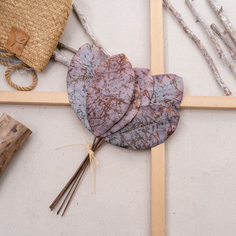 The technique employed in crafting the CL92533 is a harmonious blend of handmade artistry and machine precision. Each leaf in the bundle is carefully screen-printed onto matte satin fabric, a process that requires both skill and patience. The artists at CALLAFLORAL meticulously capture the essence of each magnolia leaf, ensuring that the final product reflects the intricate details and natural beauty of the original. The result is a bundle of leaves that appear almost lifelike, with their veins and textures vividly rendered on the fabric.