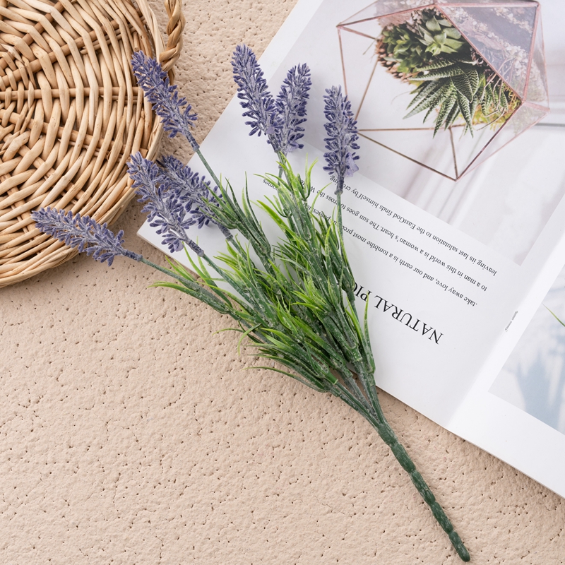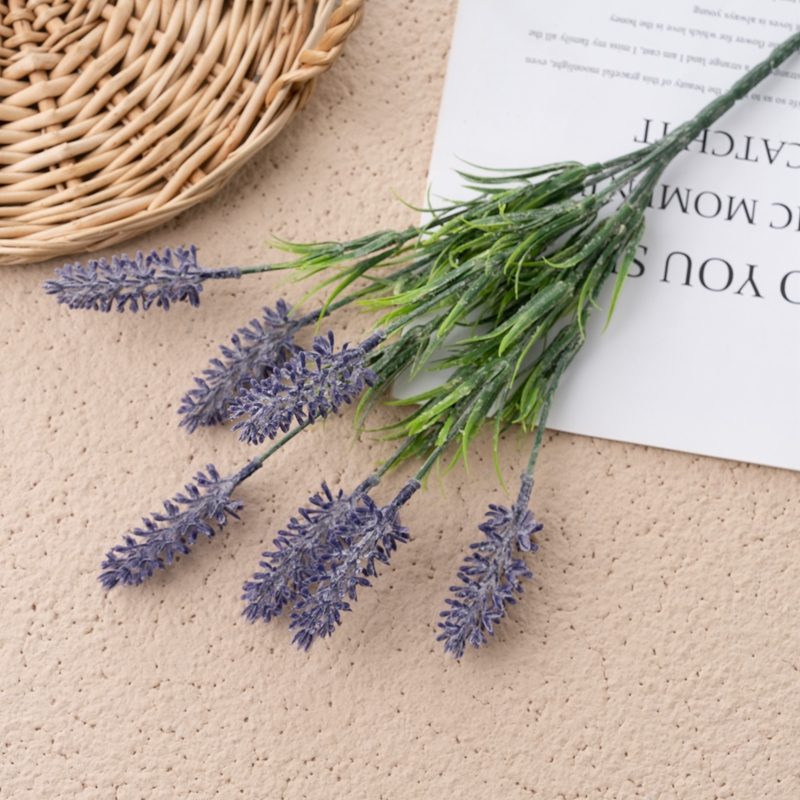 The lavender heads measure 6.5cm in length, showcasing intricate detailing and a lifelike appearance. Each bunch consists of seven lavender heads and matching leaves, creating a cohesive and visually appealing bouquet. The delicate soft glue material used ensures durability and a realistic texture that mimics the natural beauty of fresh lavender.