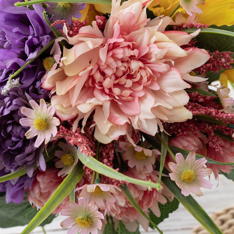 Crafted from high-quality fabric, plastic and foam, DY1-3290 is designed to impress. With an overall height of 40cm and an overall diameter of 29cm, this exquisite arrangement features big flower heads with a height of 6.5cm and a diameter of 9.5cm, middle flower heads with a height of 5cm and a diameter of 6.5cm, and small flower heads with a height of 3cm and a diameter of 5cm.