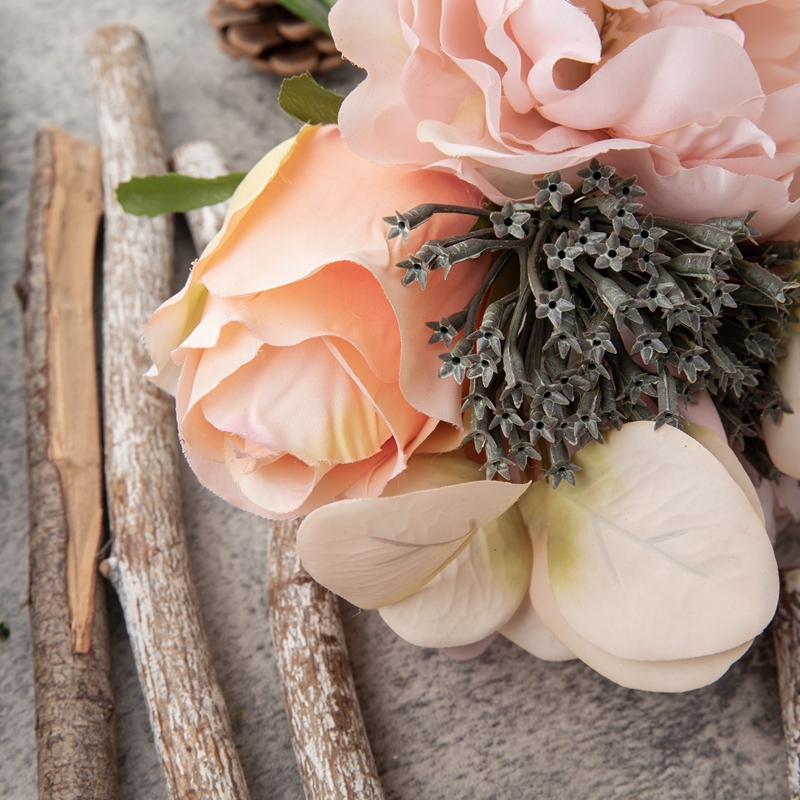 Standing at a regal overall height of 30cm and a generous overall diameter of 20cm, the DY1-4063 Rose, Peony, and Tung Leaf Bundle feature exquisite floral heads that command attention. From the majestic rose head measuring 8cm in height and 7.5cm in diameter to the delicate peony blooms with a height of 6cm and a diameter of 12cm, each element exudes elegance and sophistication, creating a visual symphony of colors and textures.