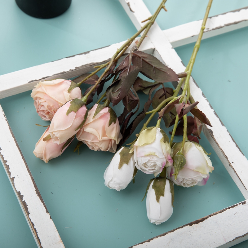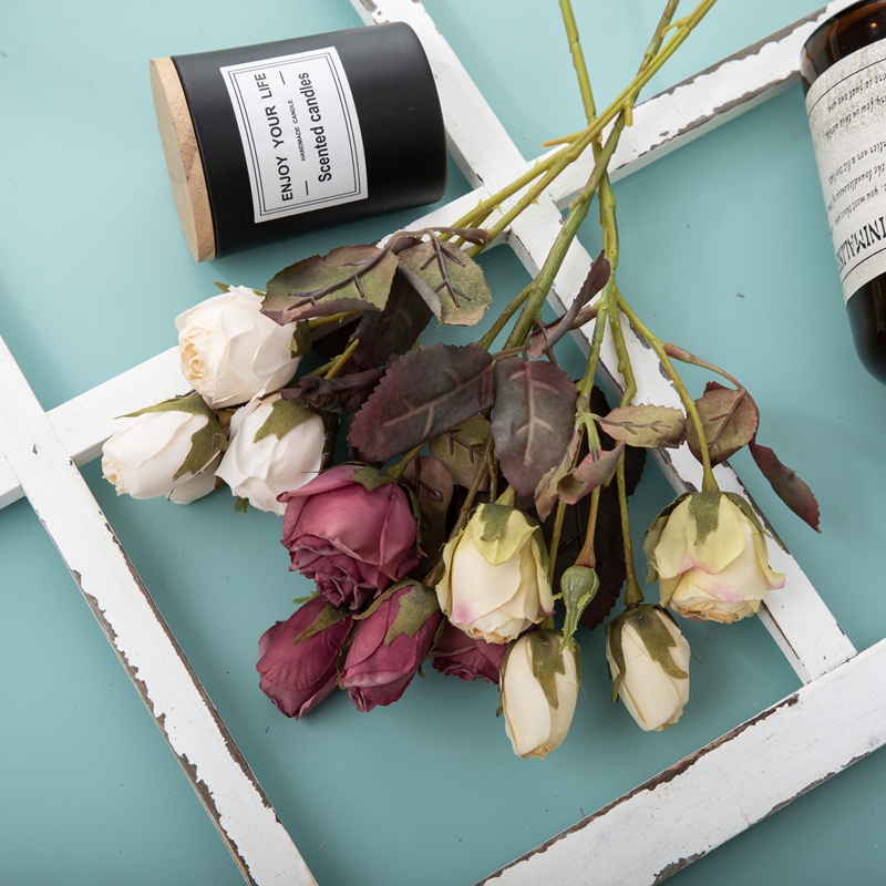 Each branch consists of one large rose head, one small rose head, two rose buds, and several meticulously matched leaves, ensuring a harmonious composition that showcases the beauty of nature. The DY1-4350 Burnt Rose Single Branch is available in a variety of colors, including Light Yellow, Pink Green, Pink in the Middle, Red, Deep and Light Purple, Pink, Rose Pink, Light Beige, White Purple, Light Purple, Dark Red, Champagne, Brown, Orange, and Yellow Green. This diverse range of colors allows for seamless integration with various decor styles and occasions.