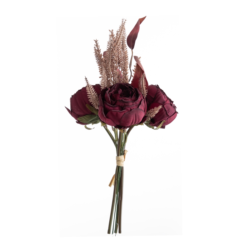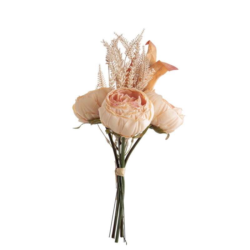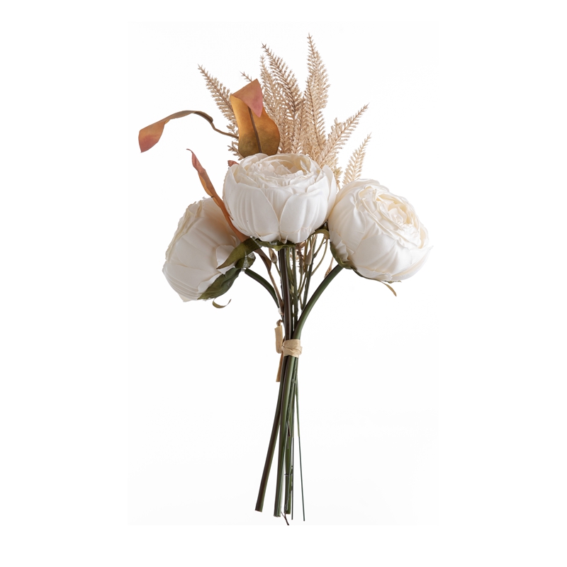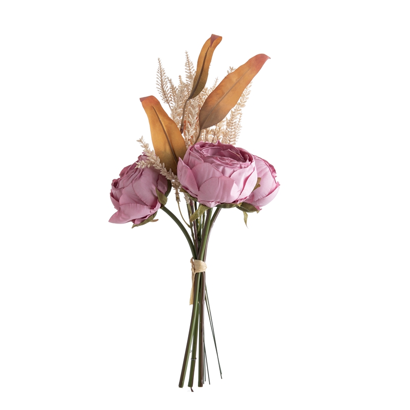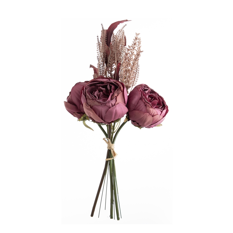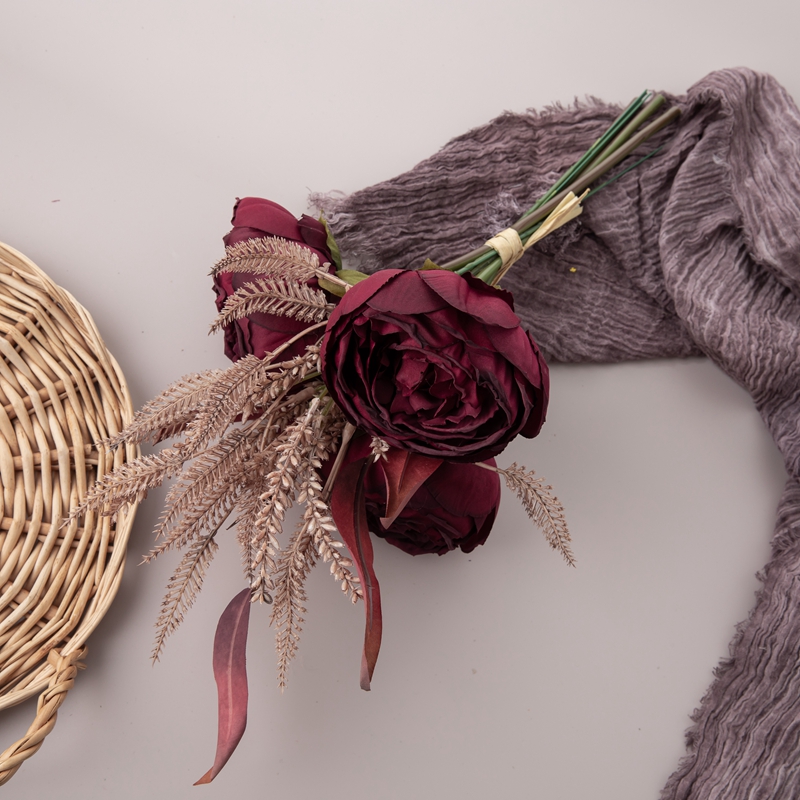 Standing tall at an overall height of 42cm and boasting a generous overall diameter of 118cm, the DY1-4385 Bundle features three dried peony heads that add a touch of luxury and charm to any space. Each dry-cooked peony flower head measures 5.5cm in height and 8cm in diameter, exuding a sense of opulence and splendor.