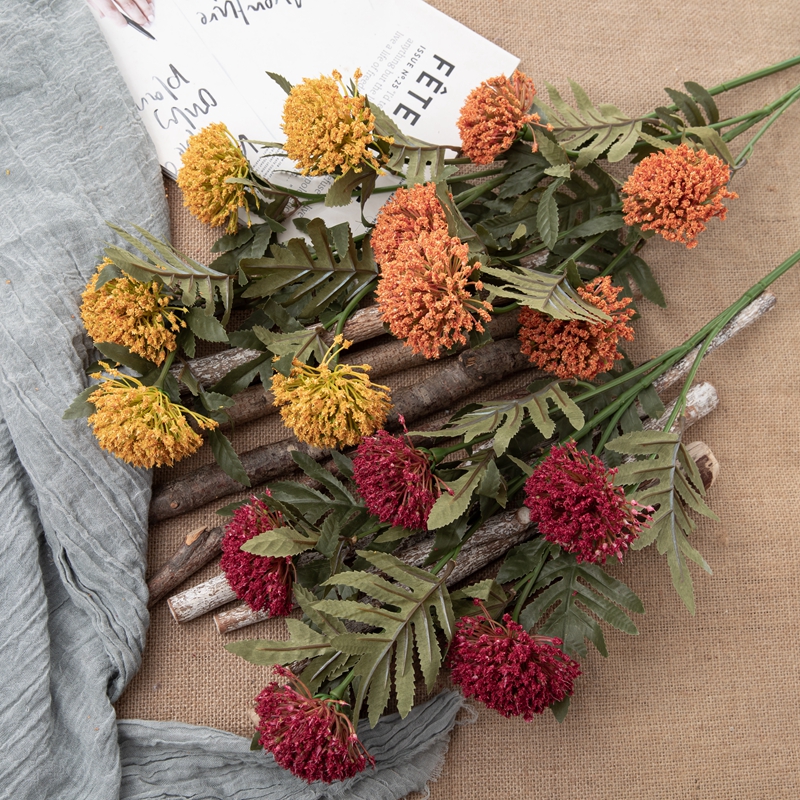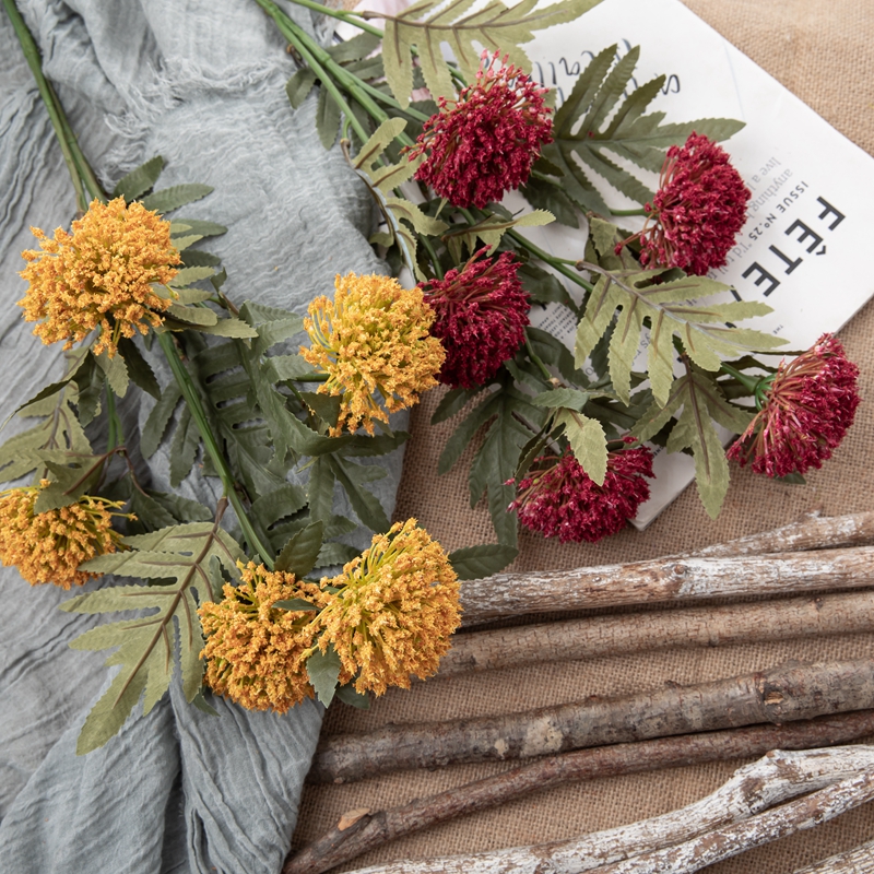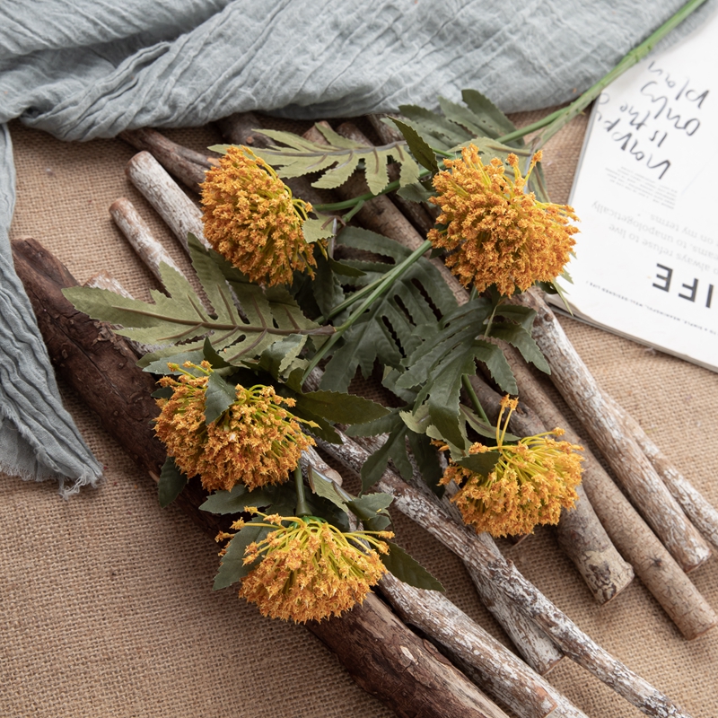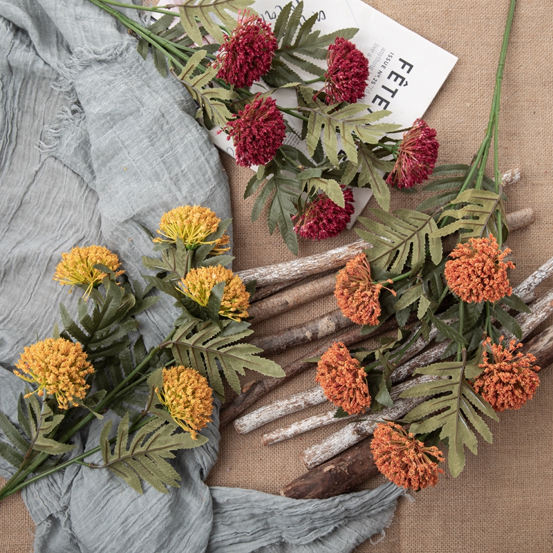 Weighing 60.9g, these twigs are lightweight and easy to handle, making them suitable for various applications. They are designed as a single branch, consisting of five green onion balls and a number of matching leaves. The vibrant colors available include orange, red, and yellow, allowing you to choose the perfect shade to complement your desired ambiance.