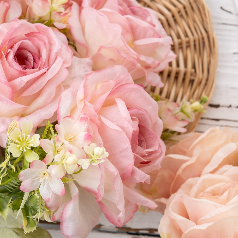 At first glance, the DY1-4925 captivates with its overall length of 52cm and a diameter of 33cm, creating a focal point that demands attention in any setting. Each rose head stands tall at 7cm, boasting a flower diameter of 10.5cm, exuding a sense of grandeur and luxury. These roses are not merely flowers; they are masterpieces of nature, replicated with meticulous precision to evoke the essence of springtime's finest blooms.