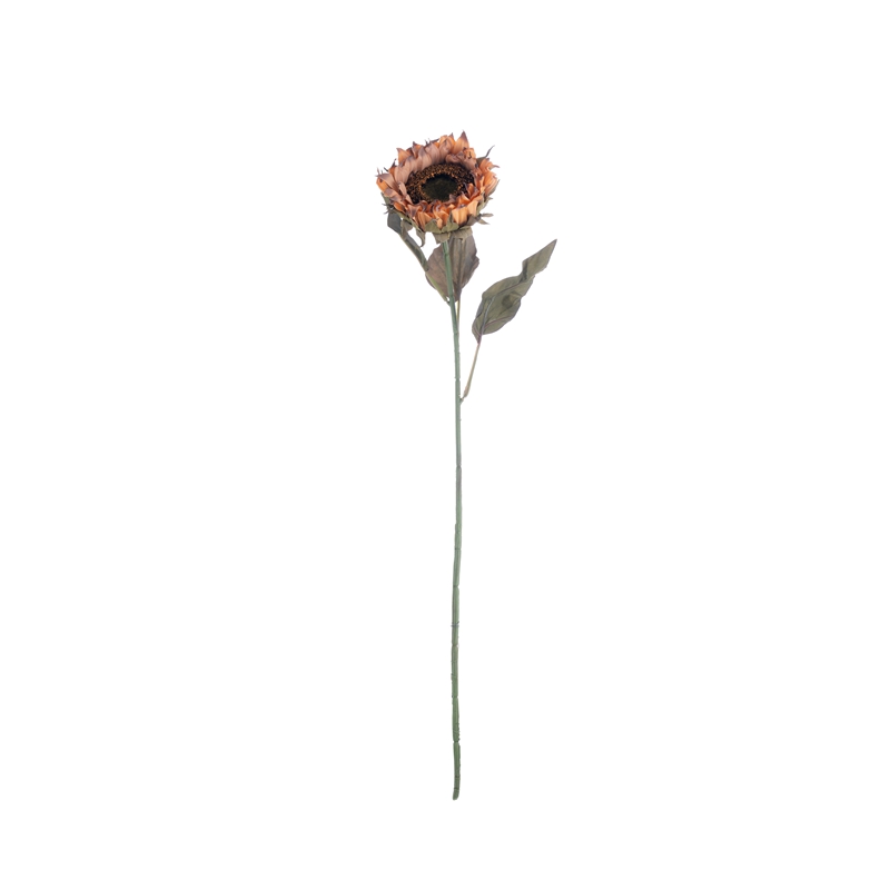 Weighing 66.2g, this single stem is lightweight and easy to display, making it a versatile addition to any setting. The stem consists of one dried sunflower head and three leaves, creating a harmonious composition that exudes simplicity and sophistication.