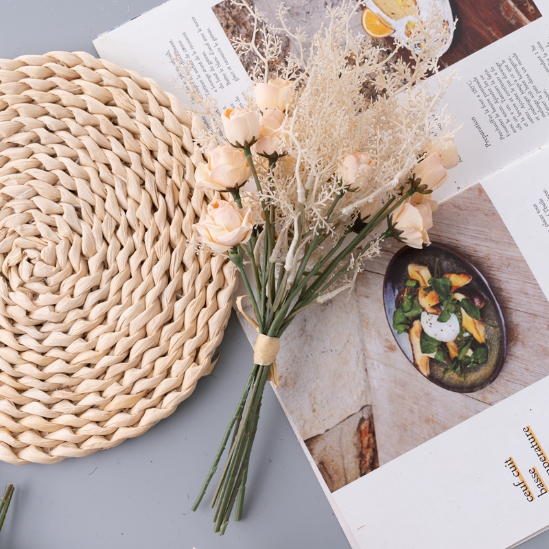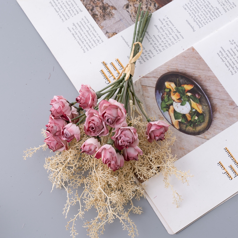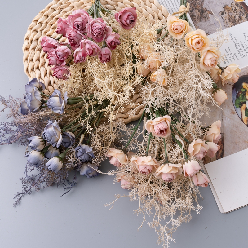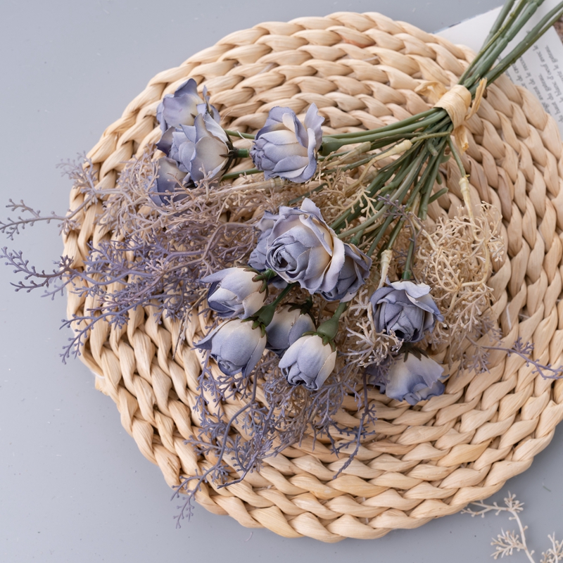This stunning piece, with its dry, timeworn appearance, captures the essence of timeless romance in a unique and captivating way. Standing tall at 30cm and boasting an overall diameter of 14cm, the DY1-5167 is a delicate blend of artistry and craftsmanship, priced as a bunch that comprises nine graceful rose heads, five budding roses, and an array of intricate plastic accessories, all meticulously designed to evoke a sense of nostalgia and charm.