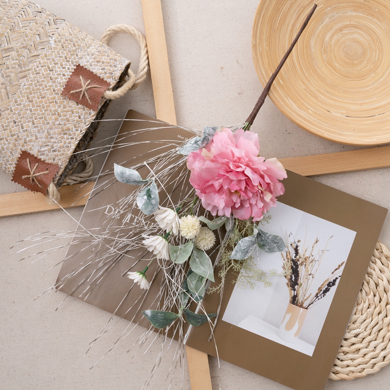 The versatility of the Peony Chrysanthemum Pineneedle Bush makes it suitable for a wide range of occasions and settings. Whether used in homes, rooms, bedrooms, hotels, hospitals, shopping malls, weddings, companies, outdoor venues, photographic setups, exhibitions, halls, or supermarkets, this floral arrangement adds a touch of beauty and sophistication.