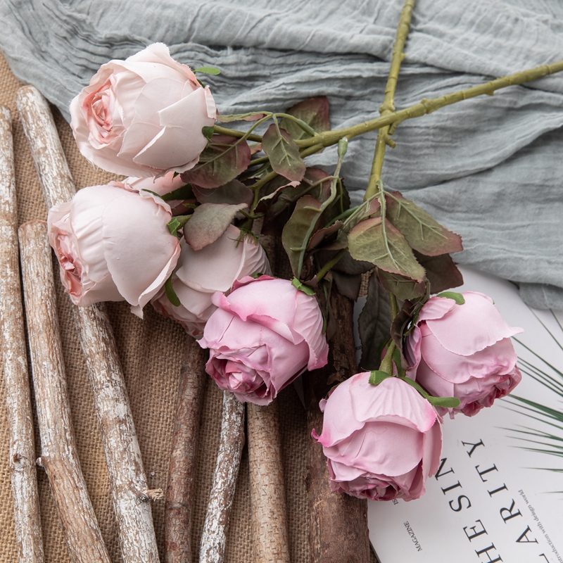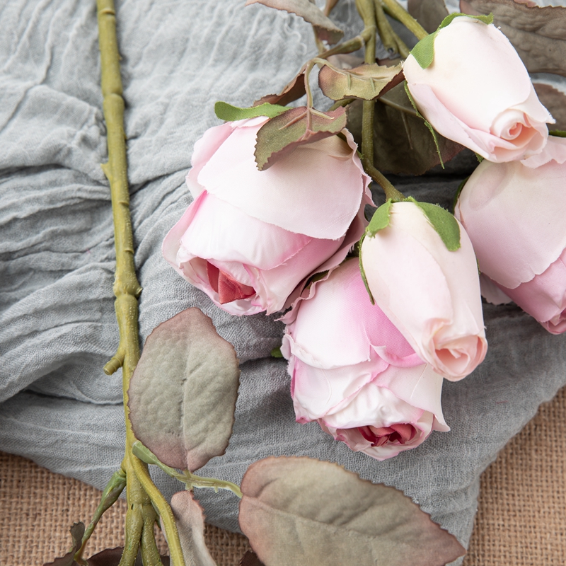 Combining traditional handmade techniques with modern machine precision, the Three-Flowered and Two-Bracted Dry Rose Branch is a masterpiece of artistry and innovation. Each bloom is meticulously crafted to achieve a lifelike appearance that mirrors the beauty of fresh flowers, ensuring a timeless appeal that transcends trends and seasons.