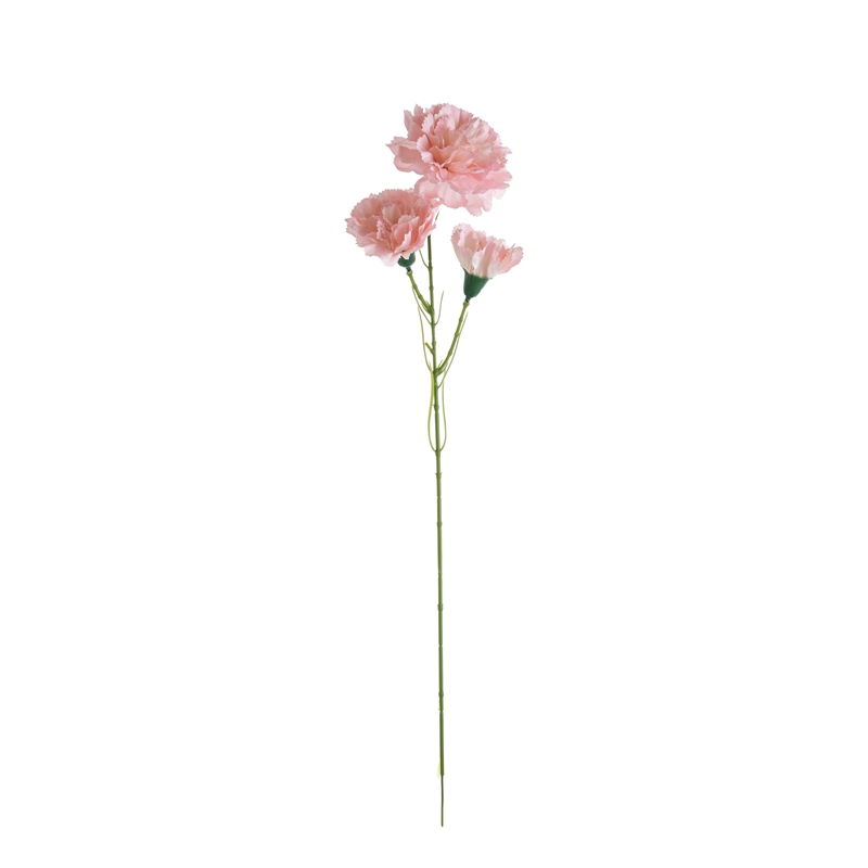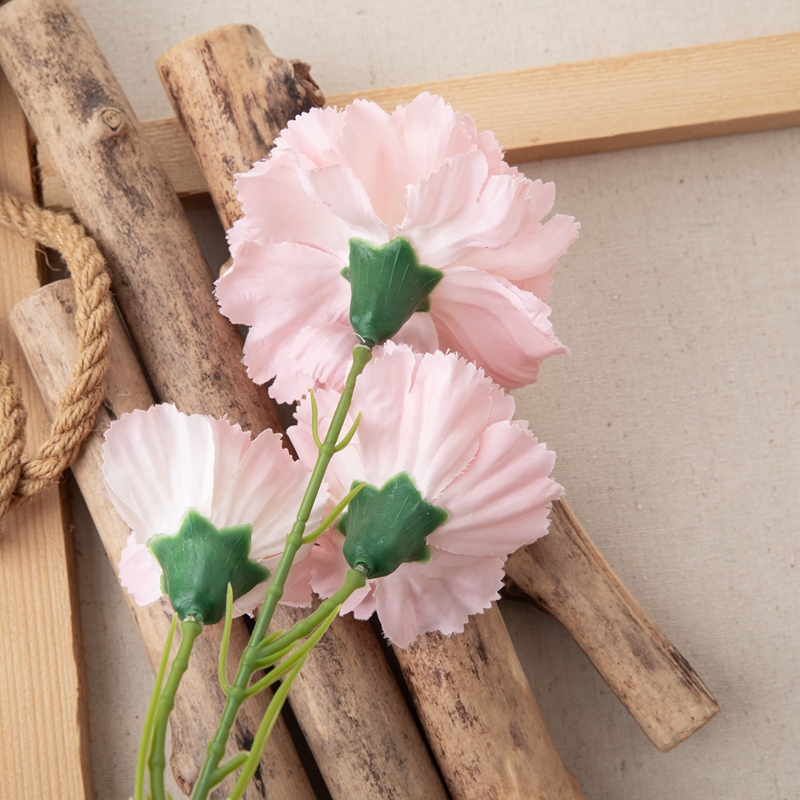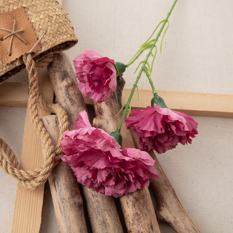 Standing at an impressive overall height of 60cm, each branch features three exquisite carnation flower heads. The large carnation flower head measures 6.3cm in height, with a diameter of 9cm. The middle carnation flower head stands at 5.5cm in height, with a diameter of 8cm. Completing the ensemble, the small carnation flower head has a height of 5.5cm, with a diameter of 6.5cm. This meticulous attention to detail creates a visually stunning display that mirrors the beauty of real flowers.