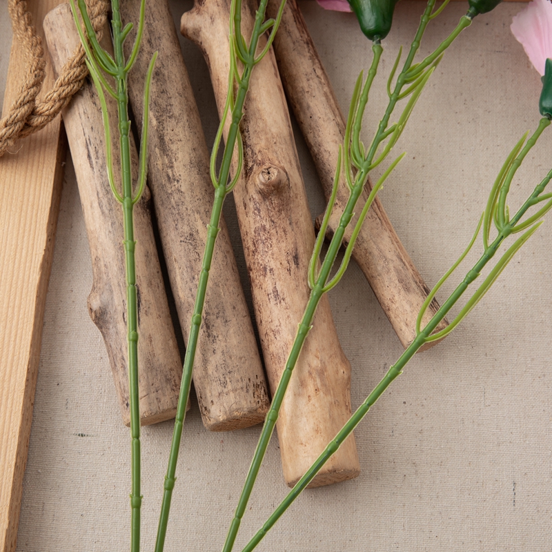 Available in a delightful array of colors including Rose Red, Light Pink, White Pink, and Pink Green, the 3 Carnation Branches offer versatility and sophistication, making them suitable for a wide range of occasions and settings. Whether used to adorn a home, hotel, wedding venue, or as a prop for photography, these carnations add a touch of beauty and elegance to any environment.