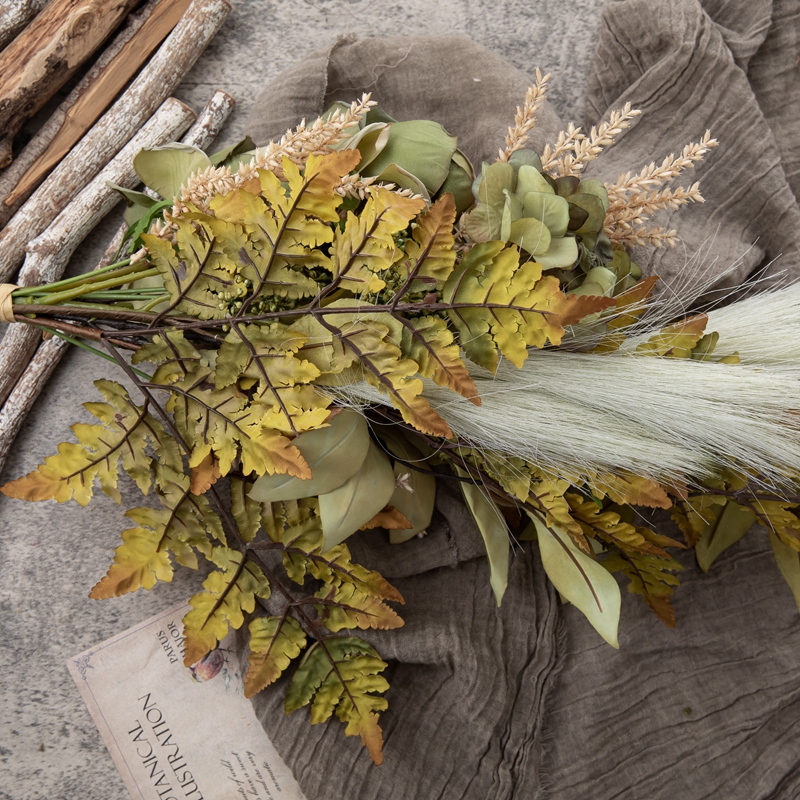 Each DY1-5916 comes as a single bundle, thoughtfully curated to showcase the beauty of these flowers in perfect harmony. This bundle comprises two peony large flower heads, one peony small head, one peony bud, one hydrangea head, a branch of silk hairy grass, and several accessories, including a carefully selected arrangement of leaves. The combination of these elements creates a visually stunning display that is sure to captivate and impress.