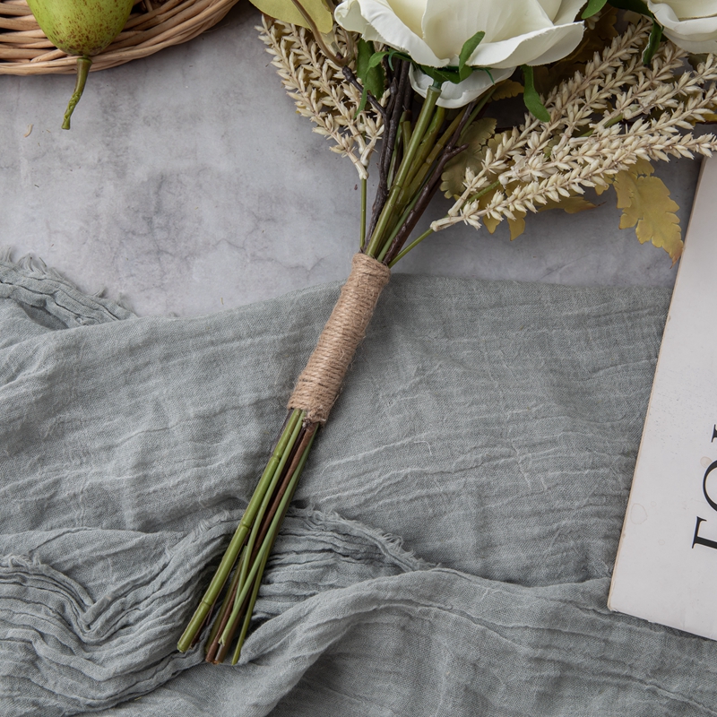 Elevating this floral masterpiece to new heights is the inclusion of a silky filamentous hairy grass branch, its delicate leaves and soft texture adding a touch of wilderness and natural charm. The grass intertwines gracefully with the flowers, creating a harmonious balance between the refined and the rustic.