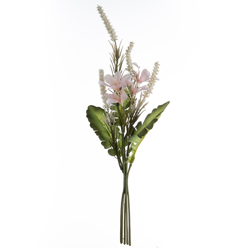 Crafted with precision and artistry, this bouquet combines delicate wildflowers in a symphony of colors, adding a touch of elegance to any setting. Made from high-quality plastic material, each component is thoughtfully designed to mimic the allure of real flowers, infusing your space with a sense of natural beauty.