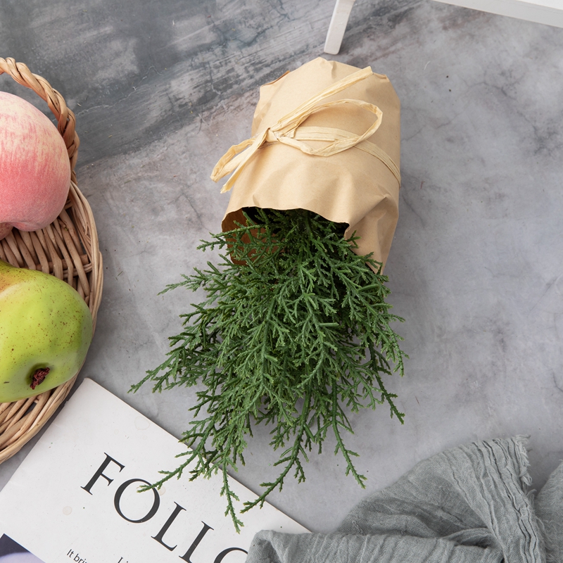 Each set of the Pine Bonsai includes lifelike pine needles arranged artistically within a plastic basin, elegantly wrapped in kraft paper. The simplicity and sophistication of the packaging add to the overall aesthetic of the product, making it an ideal gift or decor piece for any occasion. Available in a classic Green color, the Pine Bonsai adds a vibrant touch to your surroundings, infusing them with a sense of freshness and vitality.