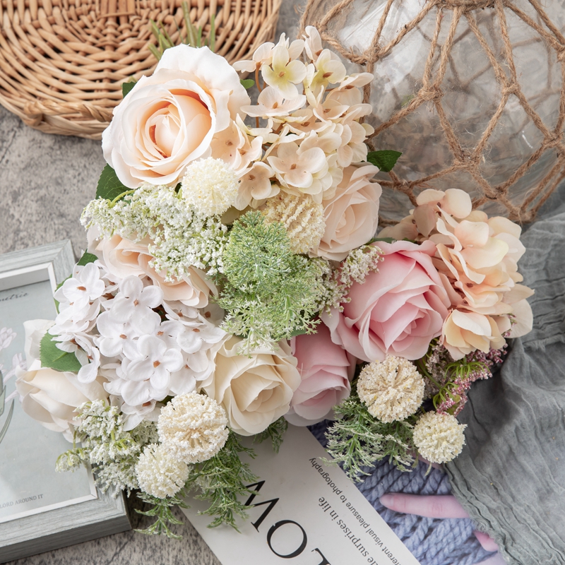 The versatility of the DY1-6129B Rose Hydrangea Bundle is unparalleled, making it the perfect addition to any setting or occasion. Whether it's gracing the centerpiece of a dining table in a cozy home, adorning the reception area of a luxurious hotel, or serving as a stunning backdrop for a wedding ceremony, this bundle seamlessly blends into its surroundings, enhancing the ambiance with its natural elegance.