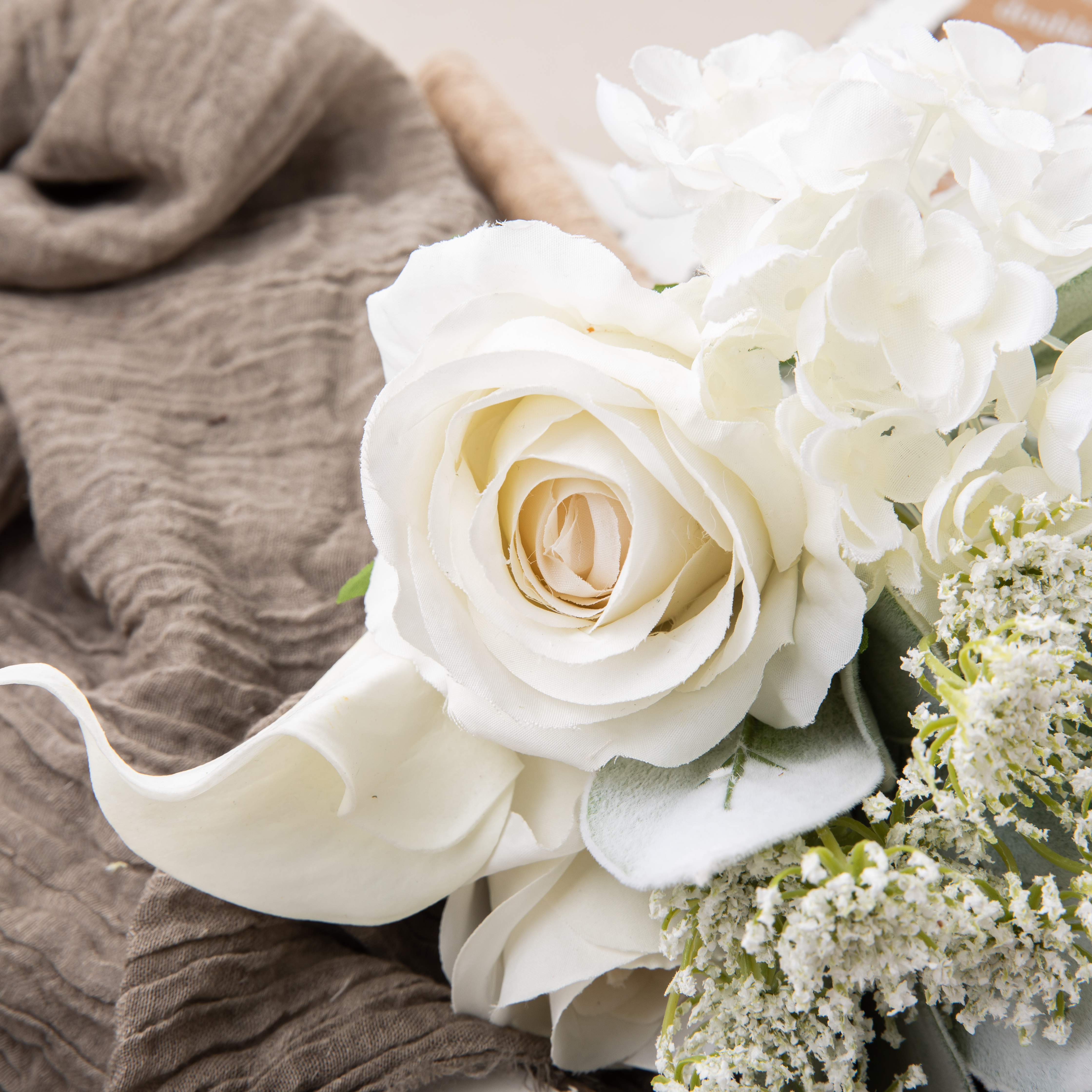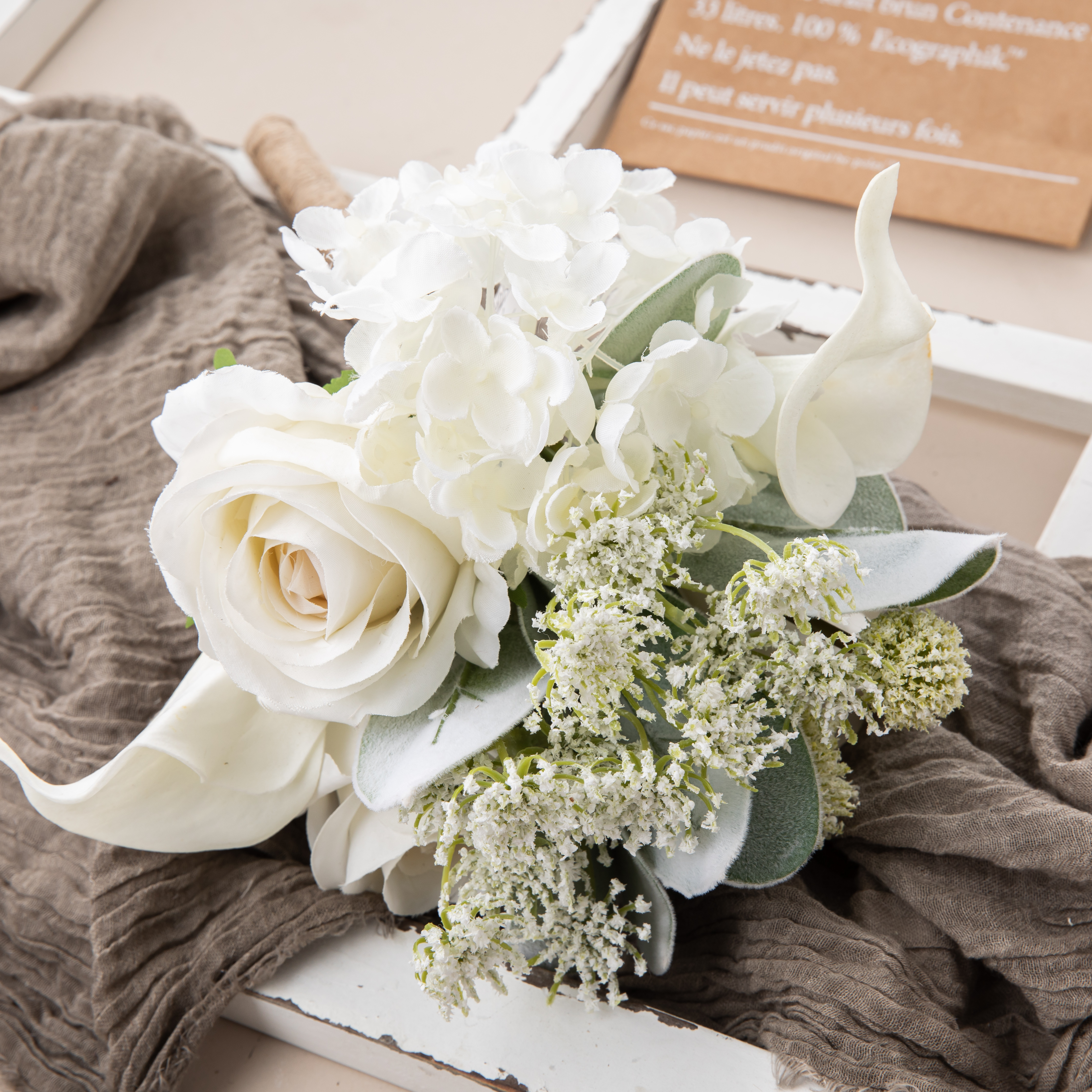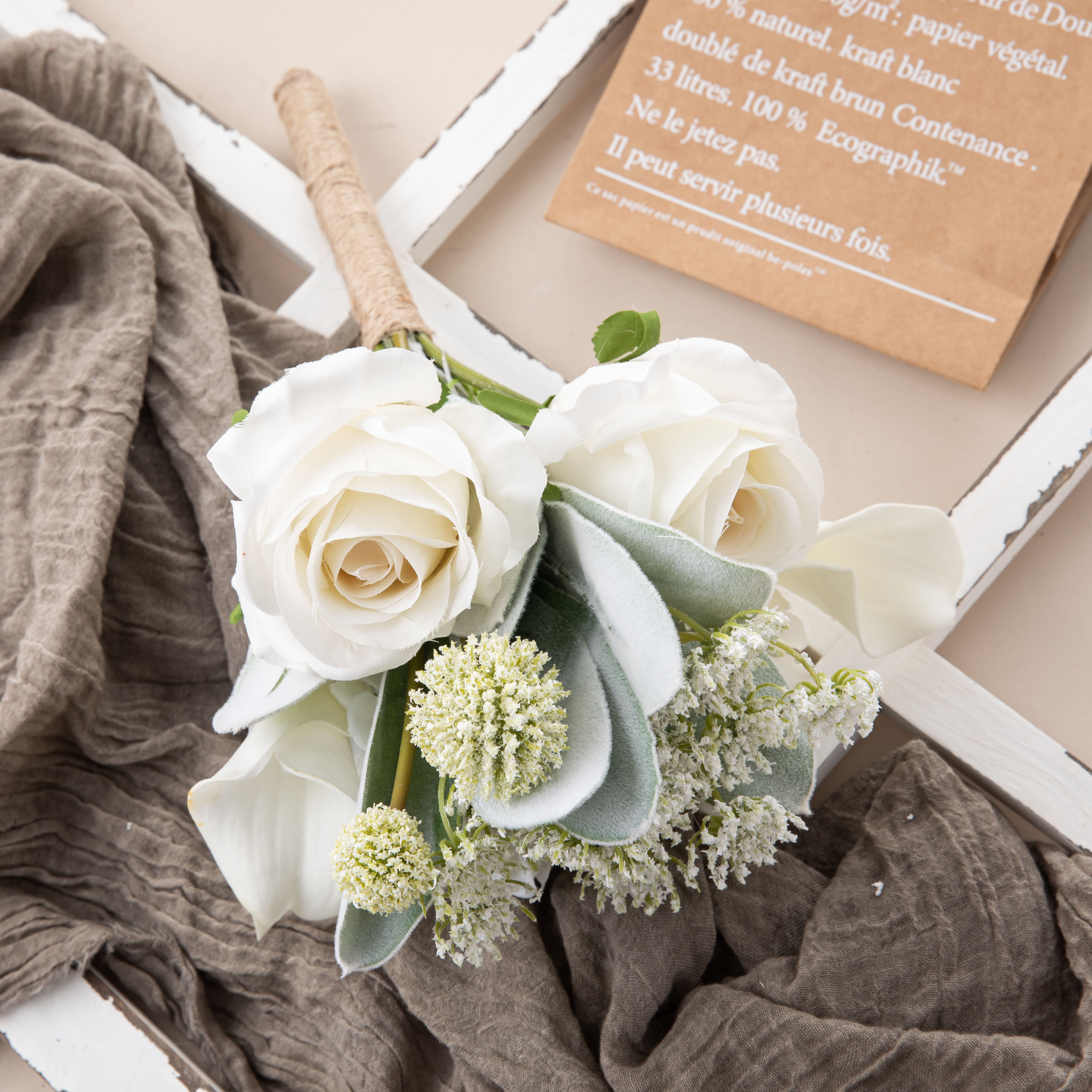 CALLAFLORAL's dedication to quality is evident in every stitch and every petal of the DY1-6129C White Rose Calla Flower Bouquet. Boasting ISO9001 and BSCI certifications, this bouquet adheres to the highest international standards of excellence, ensuring that every rose, calla lily, chrysanthemum, and accessory is of the utmost quality. The seamless fusion of handmade craftsmanship and machine precision results in a product that is both visually stunning and long-lasting.