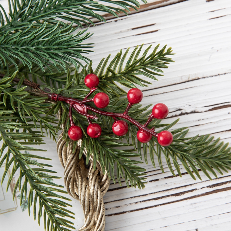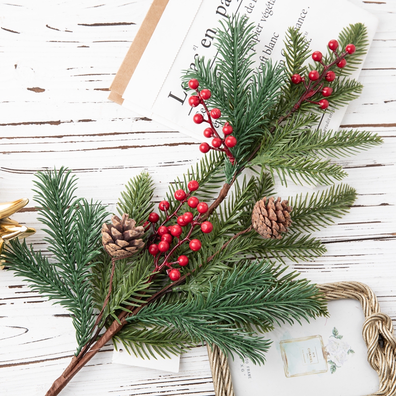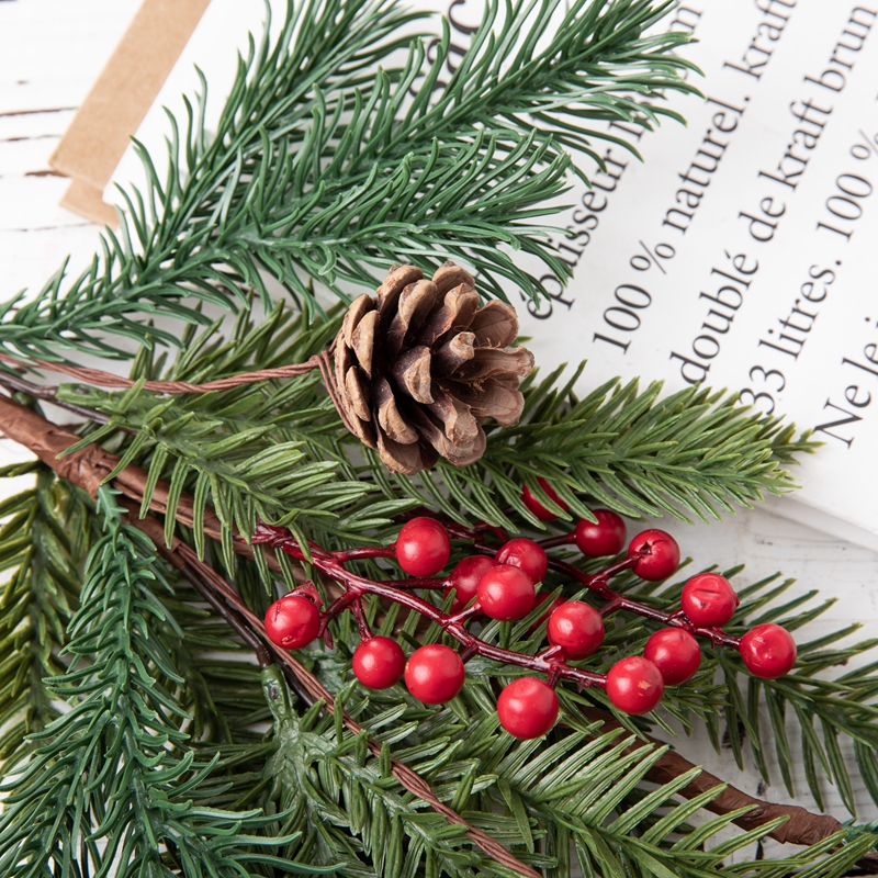 Each branch is a masterpiece in itself, featuring two natural pine cones, four red bean branches, and delicate pine needles meticulously arranged to create a harmonious composition that exudes beauty and character. The price tag represents one complete branch, offering a versatile and enchanting addition to your decor.