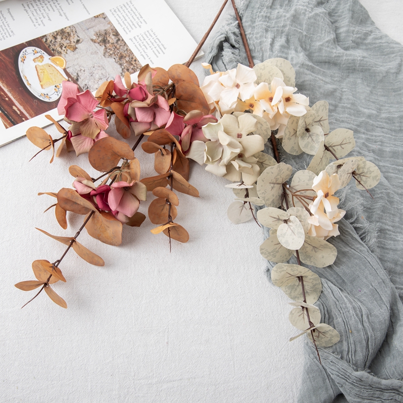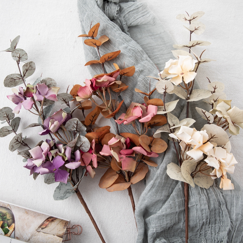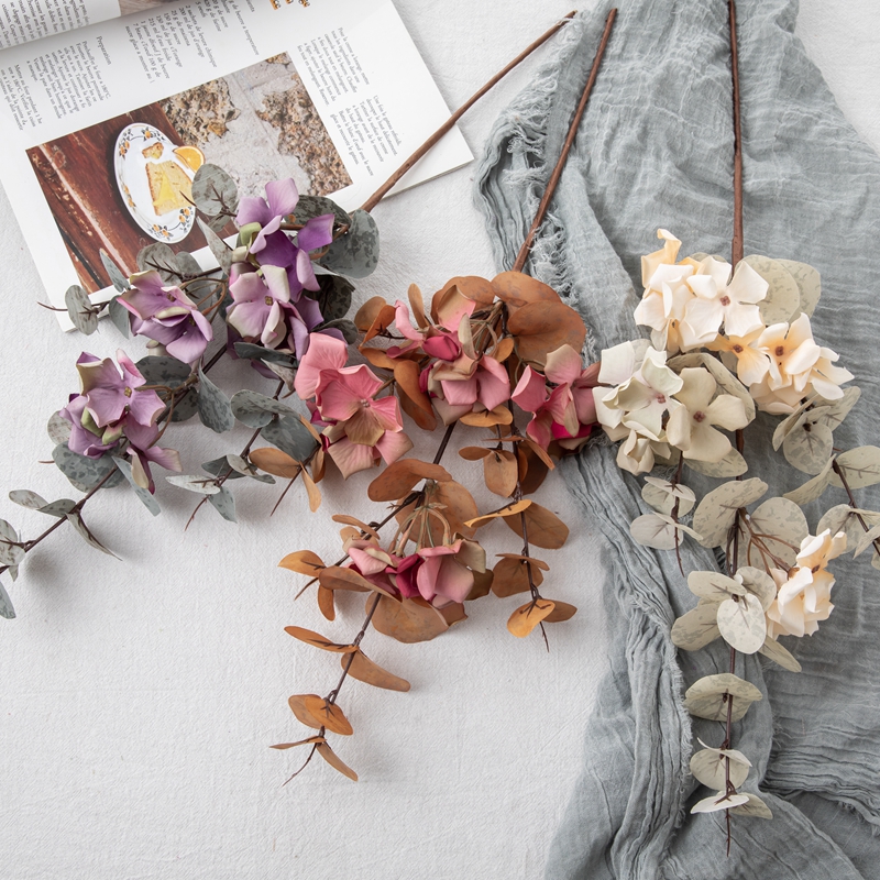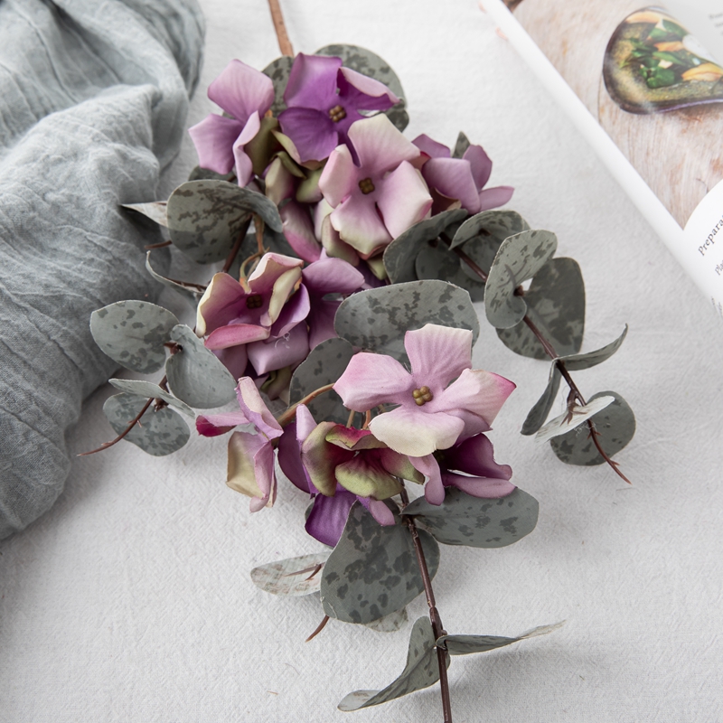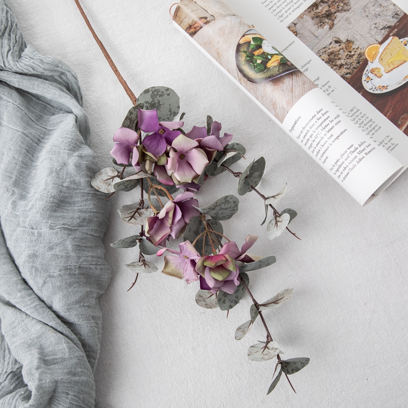 Weighing just 26.7g, the Eucalyptus Hydrangea Branch is lightweight and easy to handle, allowing for effortless display and arrangement. Each bunch is priced to include 4 groups of hydrangeas and 3 eucalyptus branches, with each hydrangea group boasting 5 intricately detailed flowers, adding depth and texture to the overall composition.