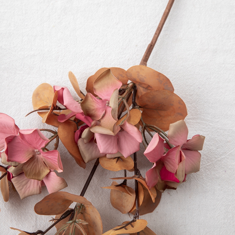Available in a selection of sophisticated colors including Champagne, Purple, and Rose Red, the Eucalyptus Hydrangea Branch offers versatility in styling and complements a range of interior design schemes. Whether used as a standalone statement piece or incorporated into larger arrangements, these branches bring a touch of natural beauty to any setting.