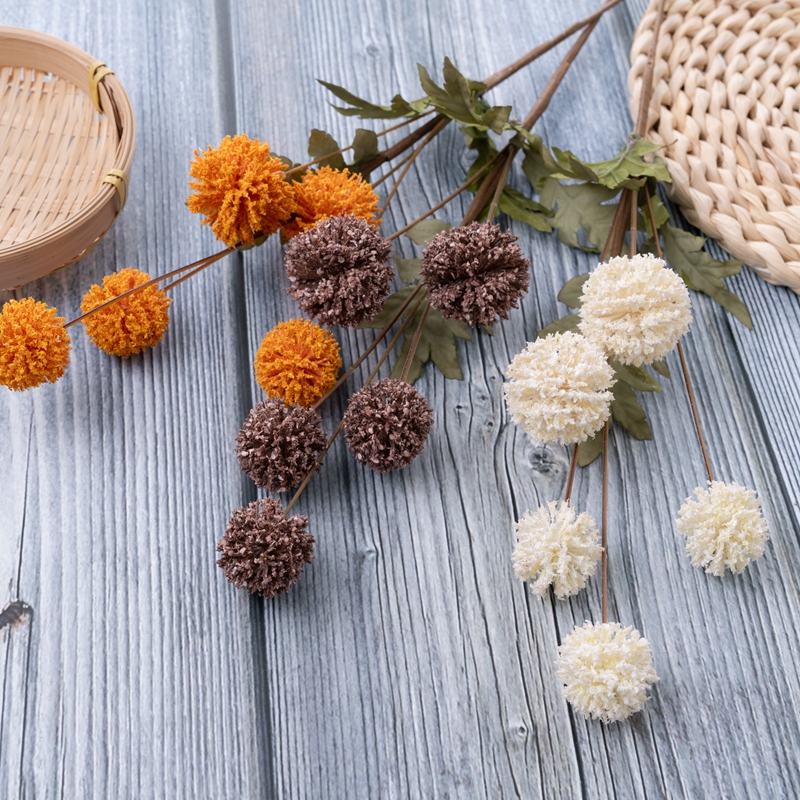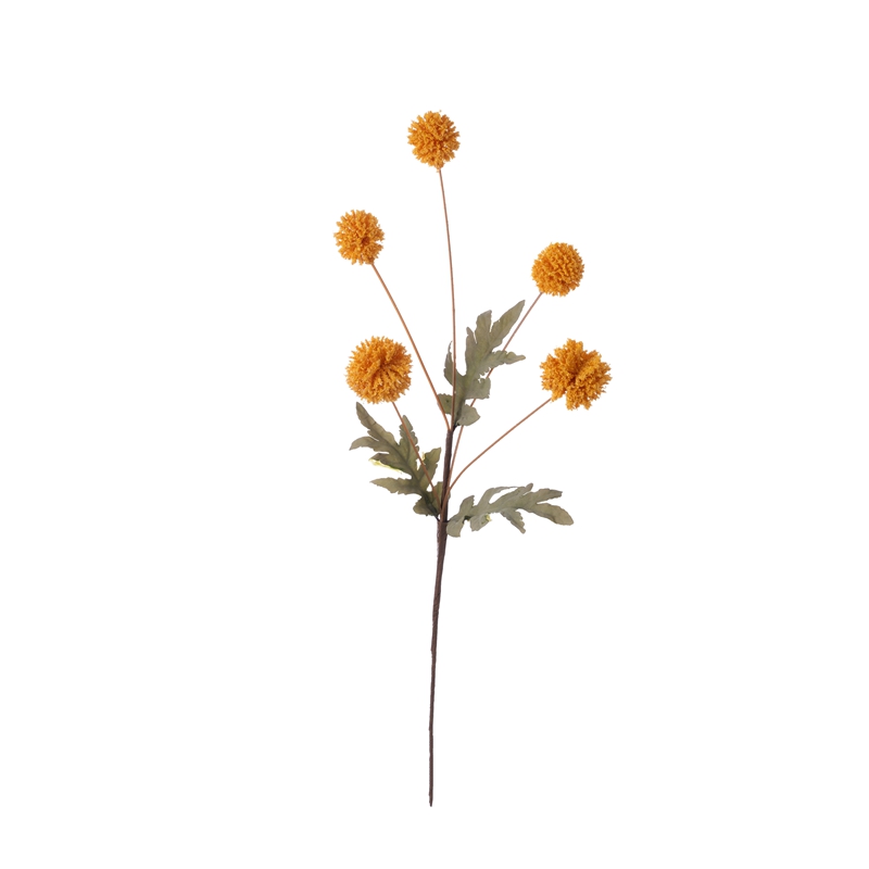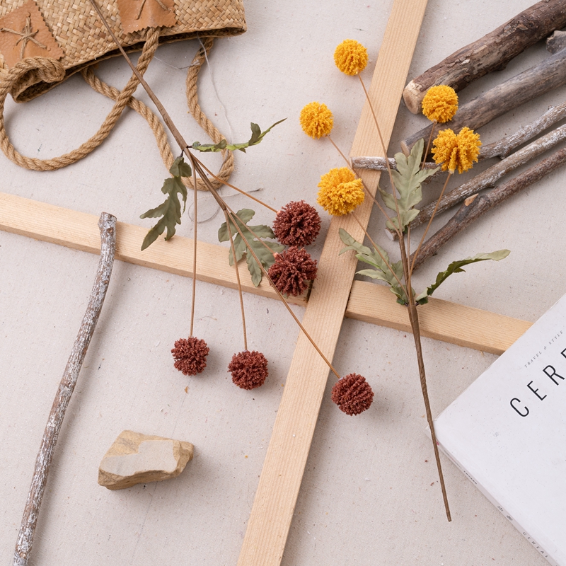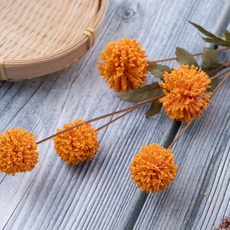 Available in a stunning array of colors including Burgundy Red, Ivory, Orange, Rose Red, and Yellow, the Five Heads Spiny Bulb Single Branch offers versatility in styling to complement any interior decor scheme or occasion. Whether used in homes, hotels, or as part of a photographic display, this piece adds a touch of natural elegance and beauty to any setting.
