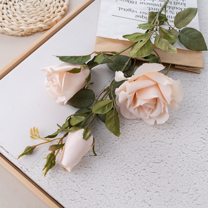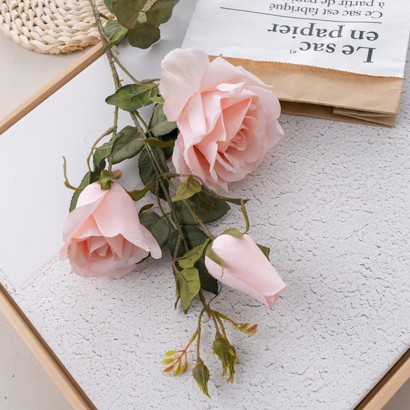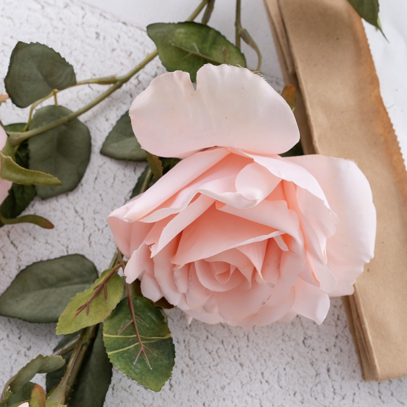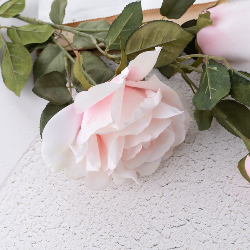 With an overall length of 83cm, the DY1-6567 Rose 2 Flowers 1 Bud Bundle exudes grace and sophistication. The flower head part extends to 41cm, boasting delicate craftsmanship and lifelike details. The large rose head stands at an impressive 7cm in height with a diameter of 12cm, while the rose florets measure 6.7cm in both height and diameter. The rose bud, standing at 6cm in height and 3.5cm in diameter, adds a touch of youthful charm to the arrangement.