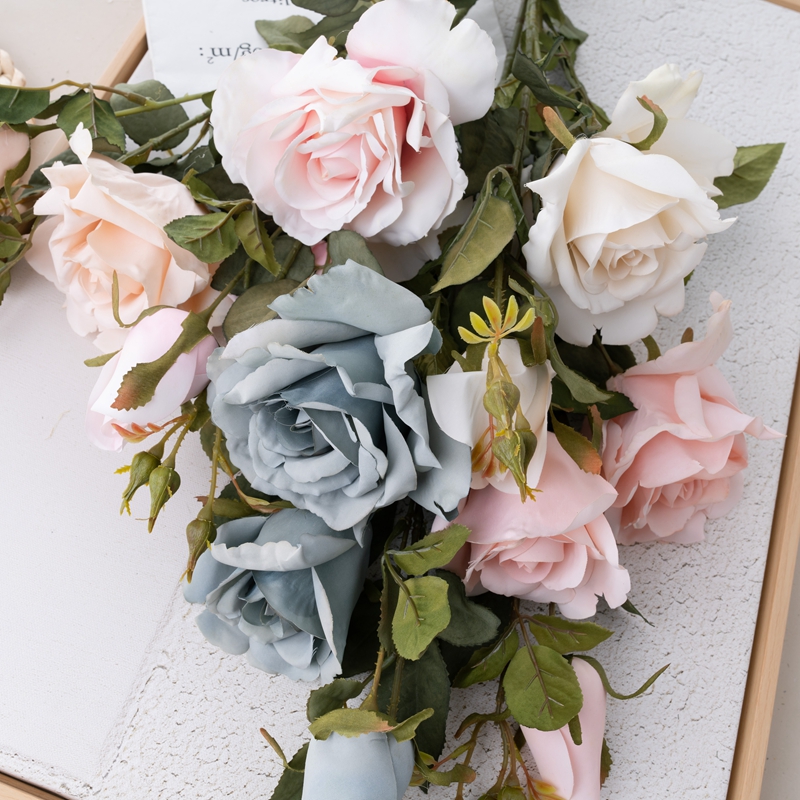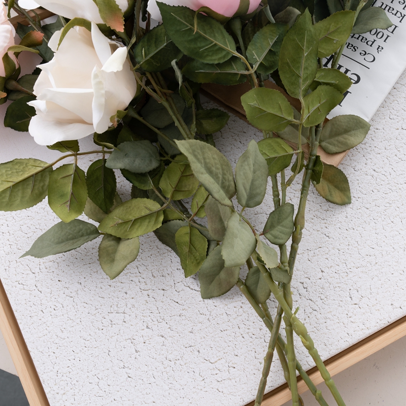 Weighing just 60.1g, this lightweight bundle is easy to incorporate into various settings, adding a touch of natural beauty to any space. Each branch consists of one large rose head, one small rose head, one rose bud, and several leaves, creating a visually captivating ensemble that captures the essence of nature's splendor.